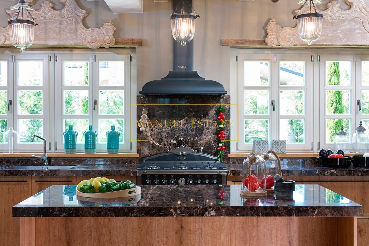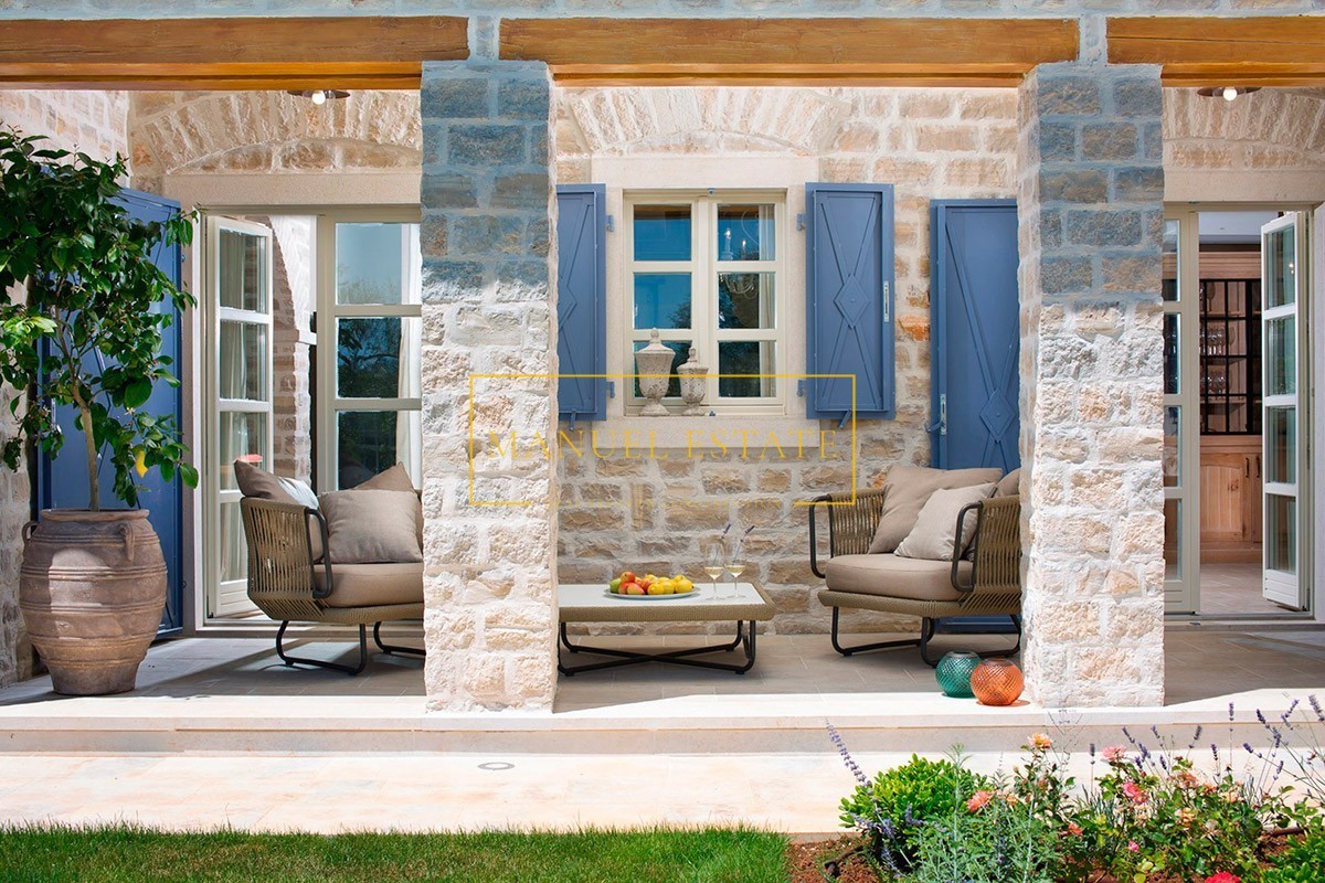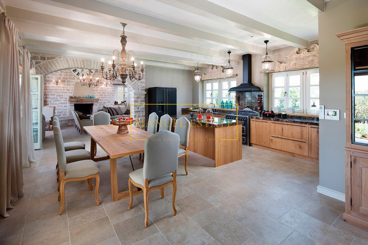 Luxe stenen villa van superieur design met zwembad en panoramisch uitzicht op zee; het is gelegen op een rustige locatie, 16 km van de zee en goed onderhouden stranden, 23 km van Poreč en 26 km van Rovinj. Het totale woonoppervlak bedraagt 353 m2, verdeeld over twee volledig geklimatiseerde verdiepingen. Op de begane grond van het huis is er een volledig uitgeruste ruime rustieke keuken met een eetkamer, een slaapkamer met een tweepersoonsbed en een badkamer, een toilet en een woonkamer met een open haard en een uitgang naar een ruim overdekt terras met nog een open haard . Op de eerste verdieping van het huis bevinden zich drie slaapkamers met elk een eigen badkamer, waarvan twee toegang hebben tot overdekte balkons met een panoramisch uitzicht over het landschap en de zee aan de horizon. De buitenkant van het huis bestaat uit een zorgvuldig aangelegde tuin van 997 m2, een zwembad van 50 m2, een buitendouche, een toilet, een zonnedek en een overdekt terras met open haard. Het huis heeft een ingebouwde centrale verwarming op gas en de koeling gebeurt met een airconditioner. Het is gebouwd in 2016, het is volledig omgeven door een stenen muur en er is ook een eigen parkeerplaats voor twee auto's op het erf. In de omgeving van de villa is er een sportterrein met een rijk gehalte; twee tennisbanen, een multifunctioneel veld voor basketbal, volleybal en minivoetbal, twee bowlingbanen, buitenfitness, een kinderspeeltuin en een tuin waar de eigenaren biologisch geteelde groenten kunnen plukken. De prijs van deze luxe stenen villa in het centrum van Istrië is 1.100.000 euro. Voor alle overige informatie kunt u gerust contact met ons opnemen.