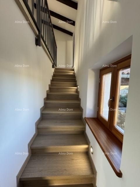Продається стилізований кам'яний будинок у середземноморському стилі в тихому місці, з чарівним видом на Адріатичне море. Будинок повністю мебльований, огороджений та пропонує повну приватність.