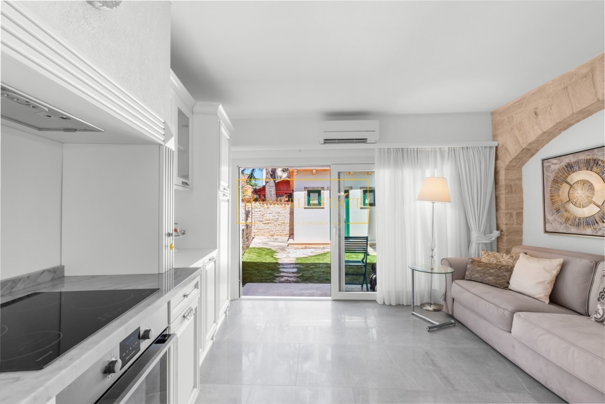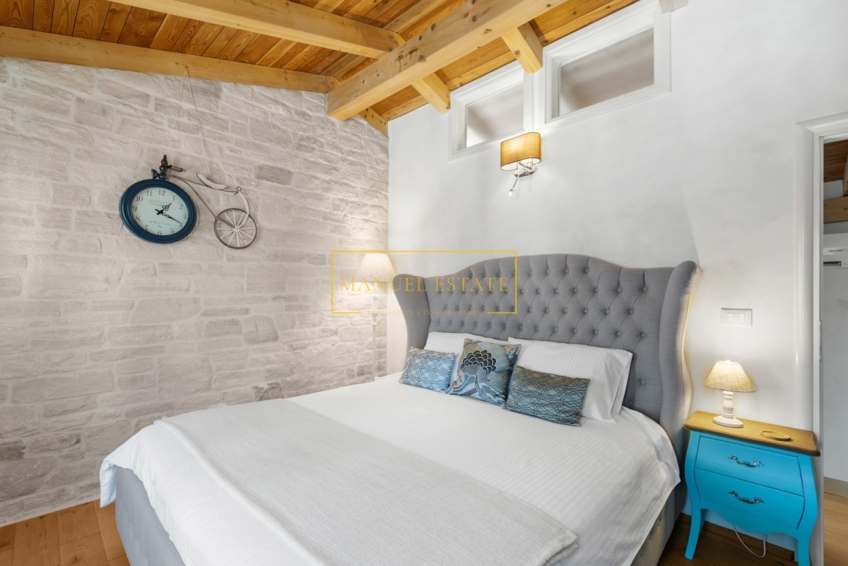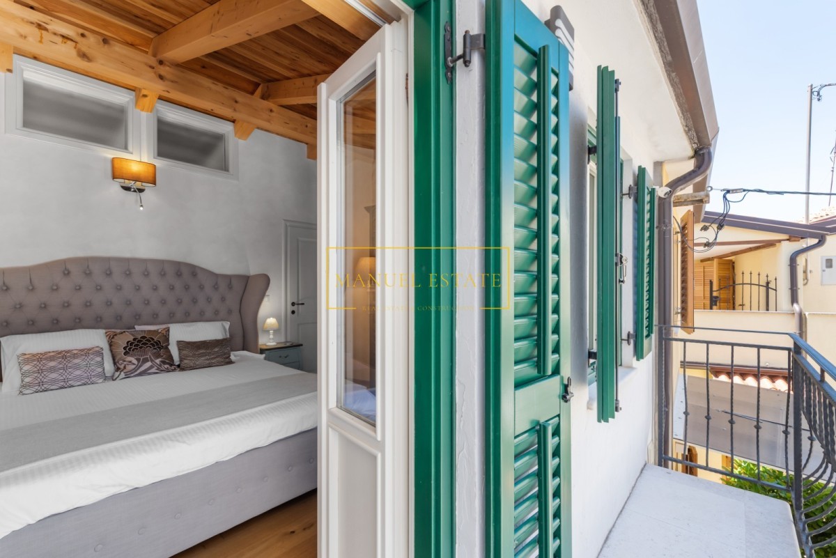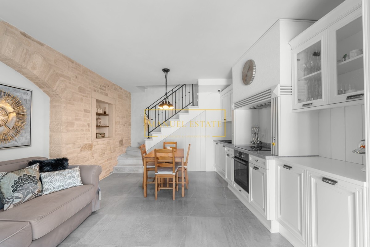 Huis in het stadscentrum, in Novigrad, op slechts 50 meter van de zee en goed onderhouden stranden. Totale oppervlakte 57 m2 met een tuin van 30 m2. De woonruimte is verdeeld over twee verdiepingen; begane grond en eerste verdieping. Op de begane grond bevindt zich een moderne witte keuken + eetkamer + woonkamer met toegang tot het terras en de tuin. Tevens bevindt zich op de begane grond een berging/wasruimte, verborgen onder een stenen trap. Op de eerste verdieping bevindt zich een slaapkamer met toegang tot het terras met uitzicht op de tuin en park, en een badkamer. Op het erf staat nog een tuinhuis met één slaapkamer en een badkamer. Verwarming en koeling gebeurt via airconditioning. De woning is in 2015 geheel gerenoveerd en voorzien van moderne en hoogwaardige meubelen. Door de uitzonderlijke ligging, in het stadscentrum, in de directe nabijheid van winkels, restaurants, banken, postkantoor en alle andere noodzakelijke voorzieningen voor een comfortabel dagelijks leven, is deze prachtige tussenwoning een ideale woning voor iedereen die zich wil bezighouden toerisme, maar ook voor huisvesting het hele jaar door. Het huis wordt volledig gemeubileerd verkocht. Prijs: 479.000 euro. Voor alle overige informatie kunt u gerust contact met ons opnemen.
