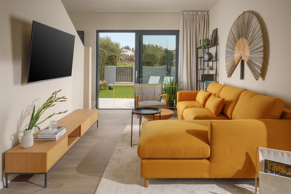 De woonkamer heeft directe toegang tot een goed onderhouden en volledig omheinde tuin, die een ontspanningszone bevat, perfect om te ontspannen en buiten te socializen. De aangelegde tuin is ideaal voor het doorbrengen van tijd met familie en vrienden en beschikt over een zwembad en een buitendouche, wat het comfort en de luxe van het onroerend goed verder verhoogt.