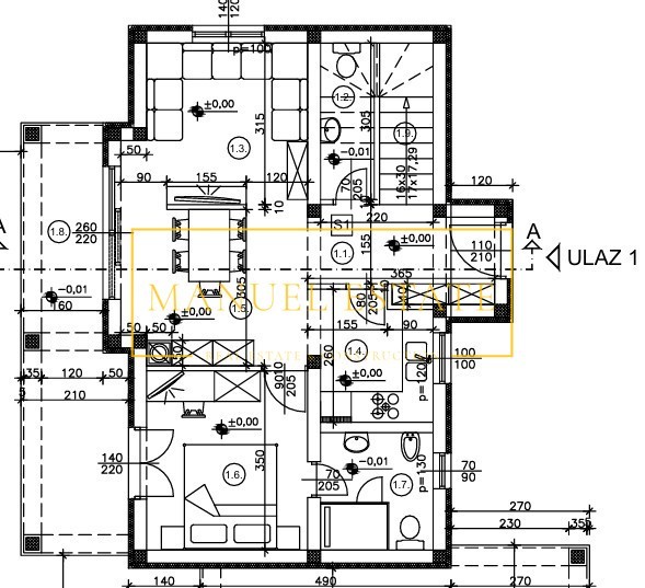 Let op: Indien de koper na bezichtiging (fysieke toegang/persoonlijk bezoek) de betreffende woning bij makelaar "Manuel Estate d.o.o." de definitieve beslissing heeft genomen om het te kopen en de verkoop met de eigenaar van het onroerend goed te sluiten, is hij verplicht om aan het bureau een bemiddelingscommissie te betalen ten bedrage van 3% + btw van de totale aankoopprijs.