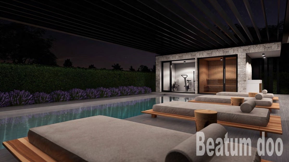 Strešna terasa s hidromasažo, savna, ena kopalnica in prostor za druženje