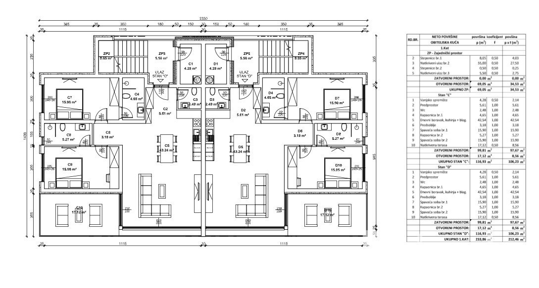 Kuhinja, jedilnica, dnevna soba, zunanja shramba