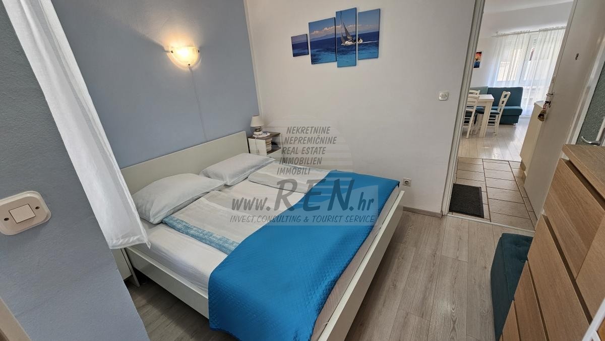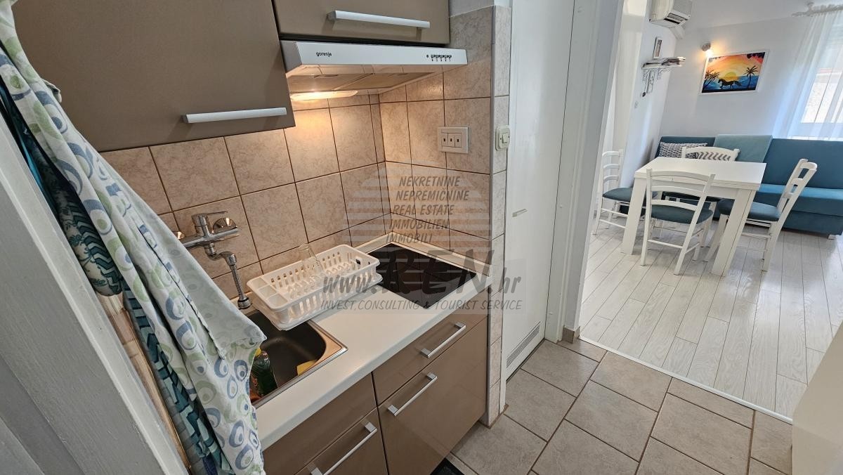 Stanovanje v okolici Novigrada ima skupno 36 m2, nahaja se v prvom nadstropju, oddaljen 5 min. (300m) od morja in od prekrasne urejene plaže, 10 min. (3000m) odaljeno od centra Novigrad. Stanovanje je razdeljeno na kuhinju, dnevnu sobu, kopalnicu, spalnicu, 2 terase. Kompletno opremljen.