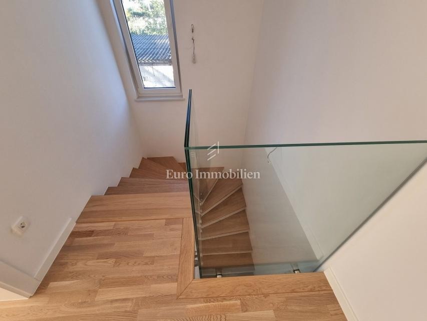 Prodamo stanovanje v novogradnji z bazenom. Stavba ima samo 4 stanovanjske enote in se nahaja na mirni lokaciji, nedaleč od centra mesta z vsemi potrebnimi vsebinami in ponuja pogled na morje iz zgornjih etaž stavbe (prvo in drugo nadstropje). Vsi apartmaji so v dveh etažah.