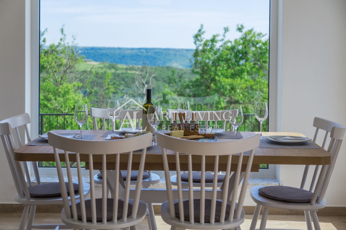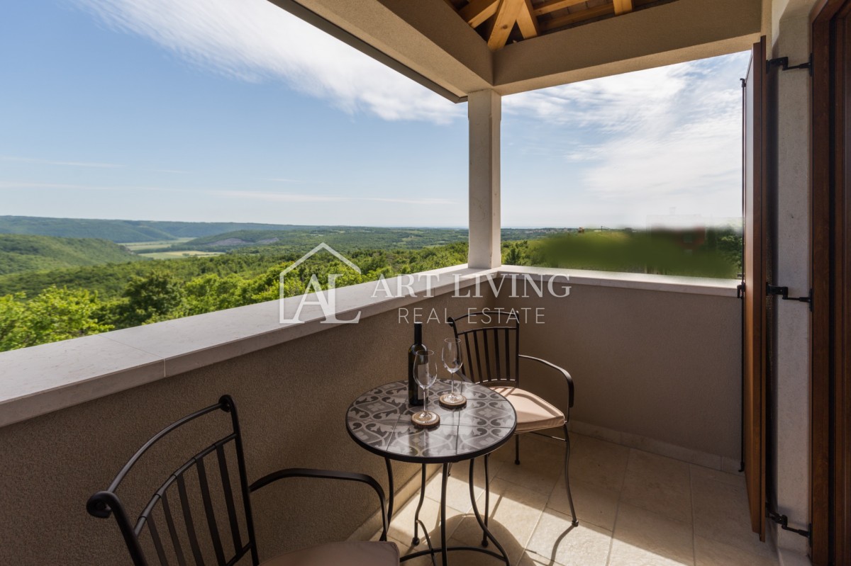 Prvo nadstropje je dostopno po notranjem stopnišču, kjer sta dve spalnici z lastnimi kopalnicami in čitalnica. prostorno teraso z odprtim pogledom na morje in čudovito slikovito istrsko pokrajino.