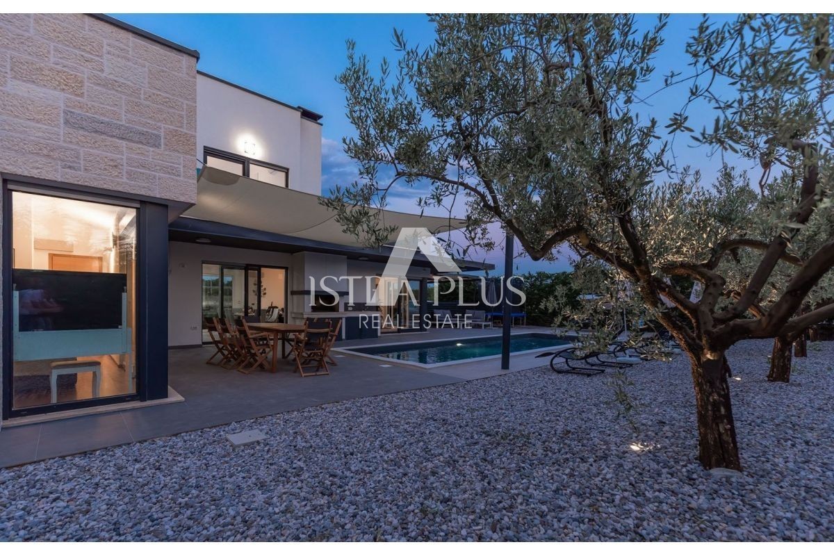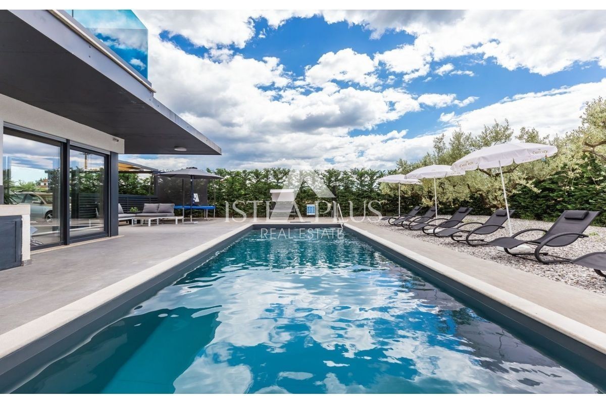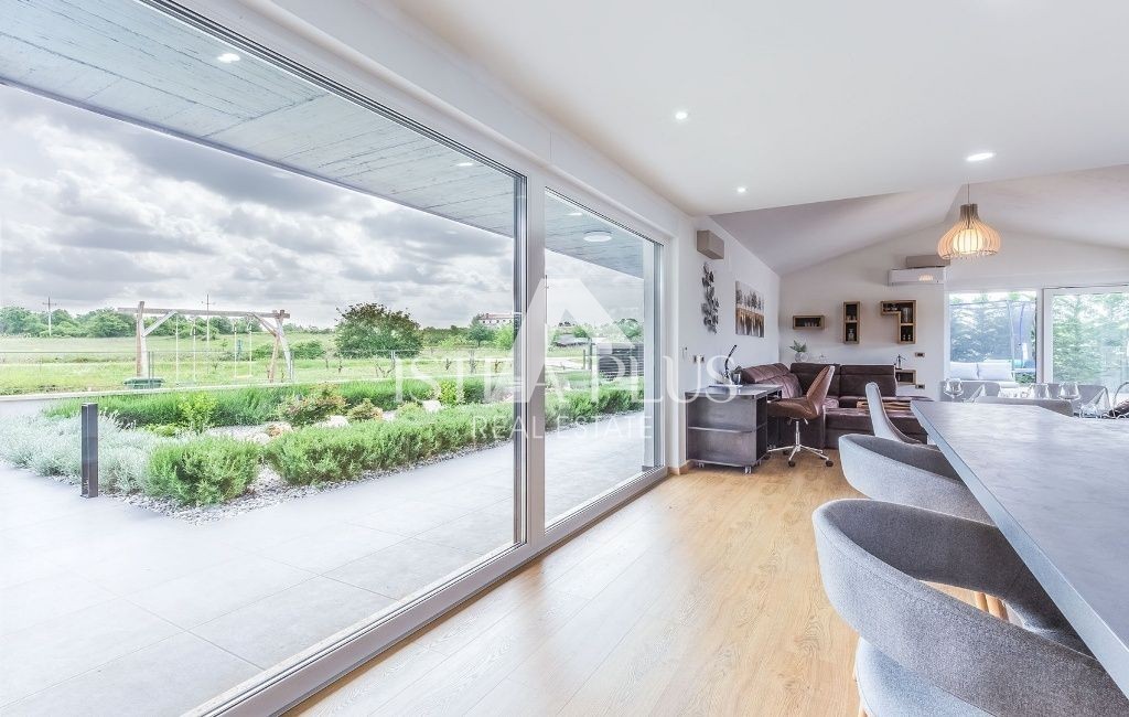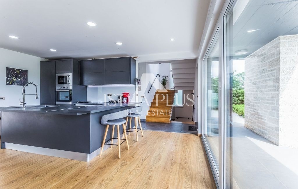 Hiša moderne arhitekture s površino 253 m2 na parceli 825 m2 z bazenom.
