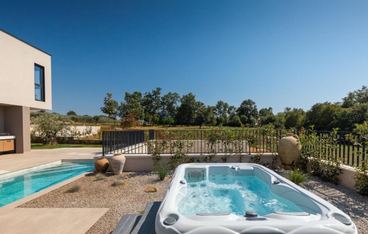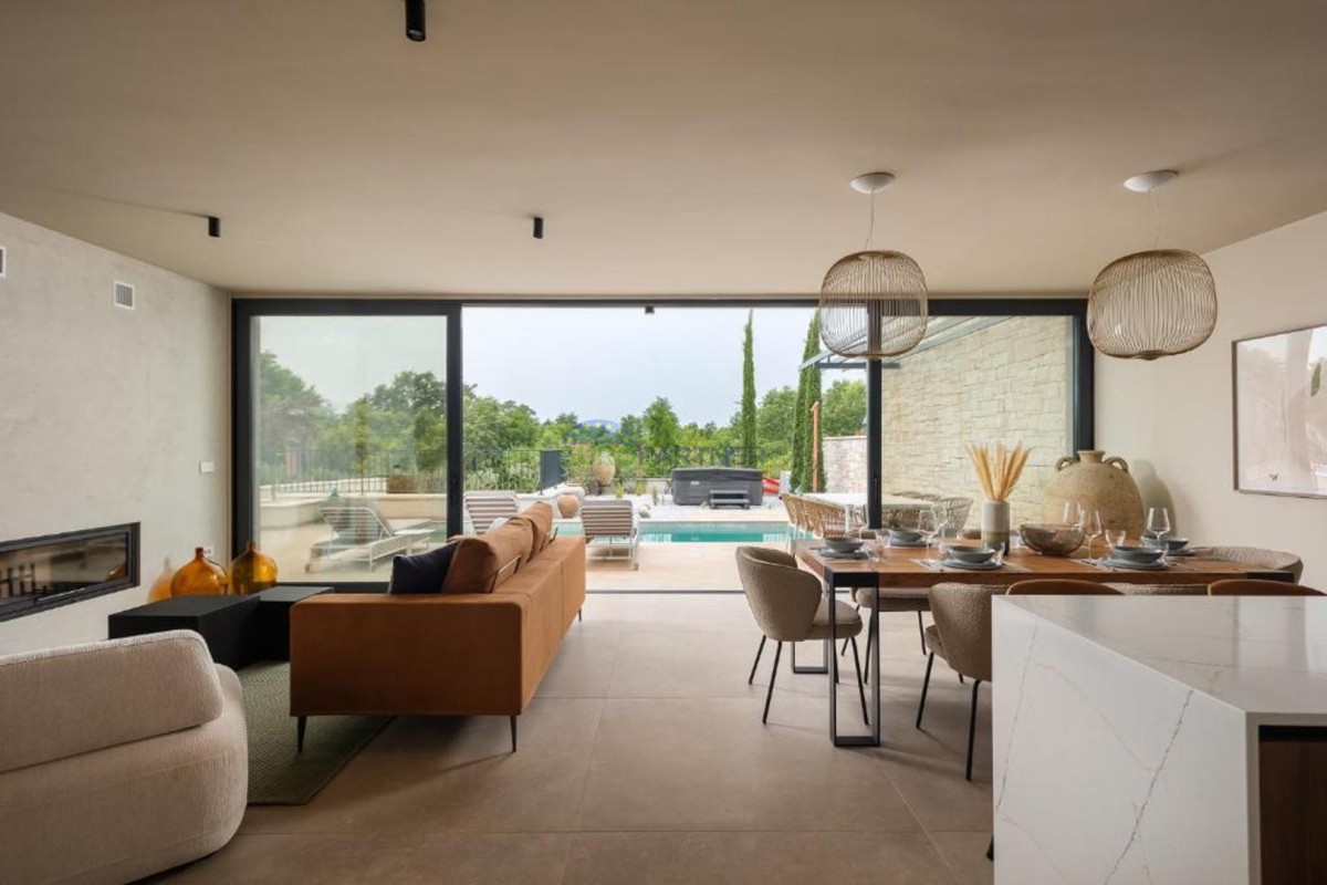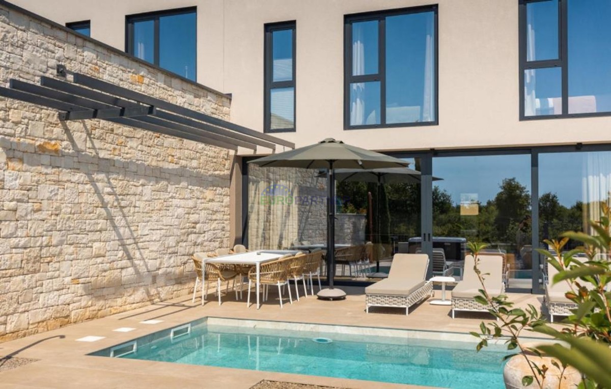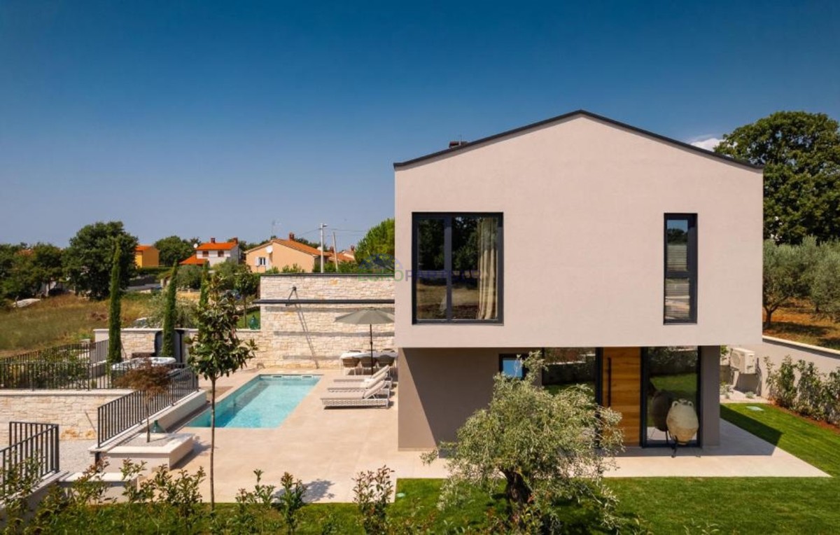 Ta dizajnerska vila dvojček se nahaja v bližini Poreča, v vasi le 4 km od centra Poreča.