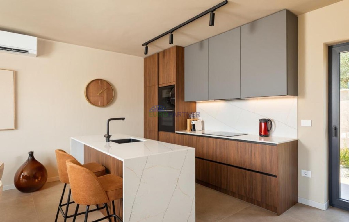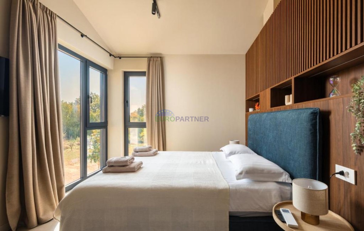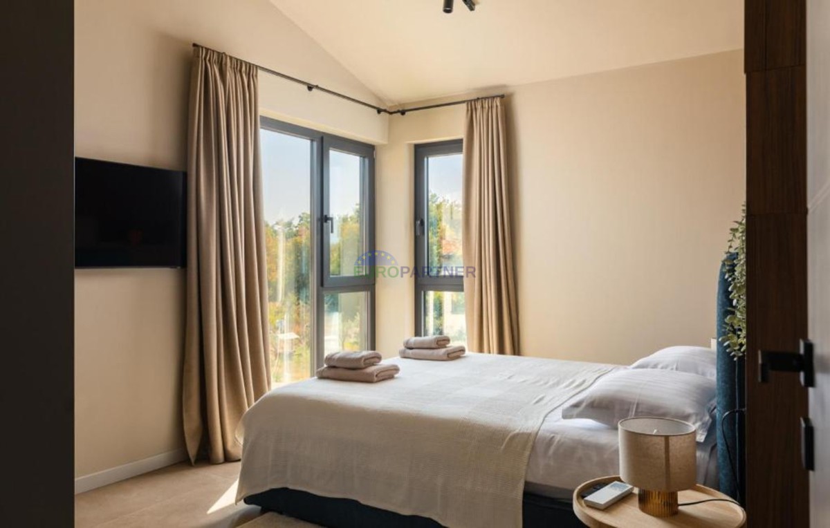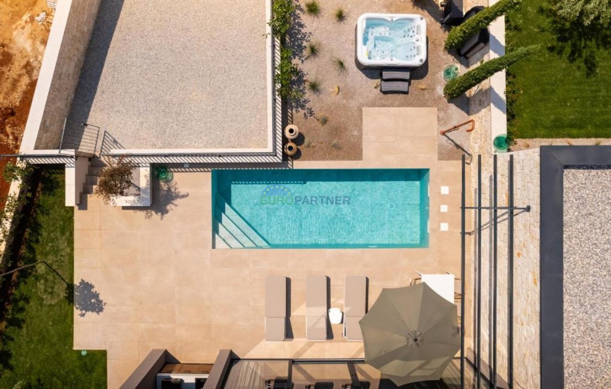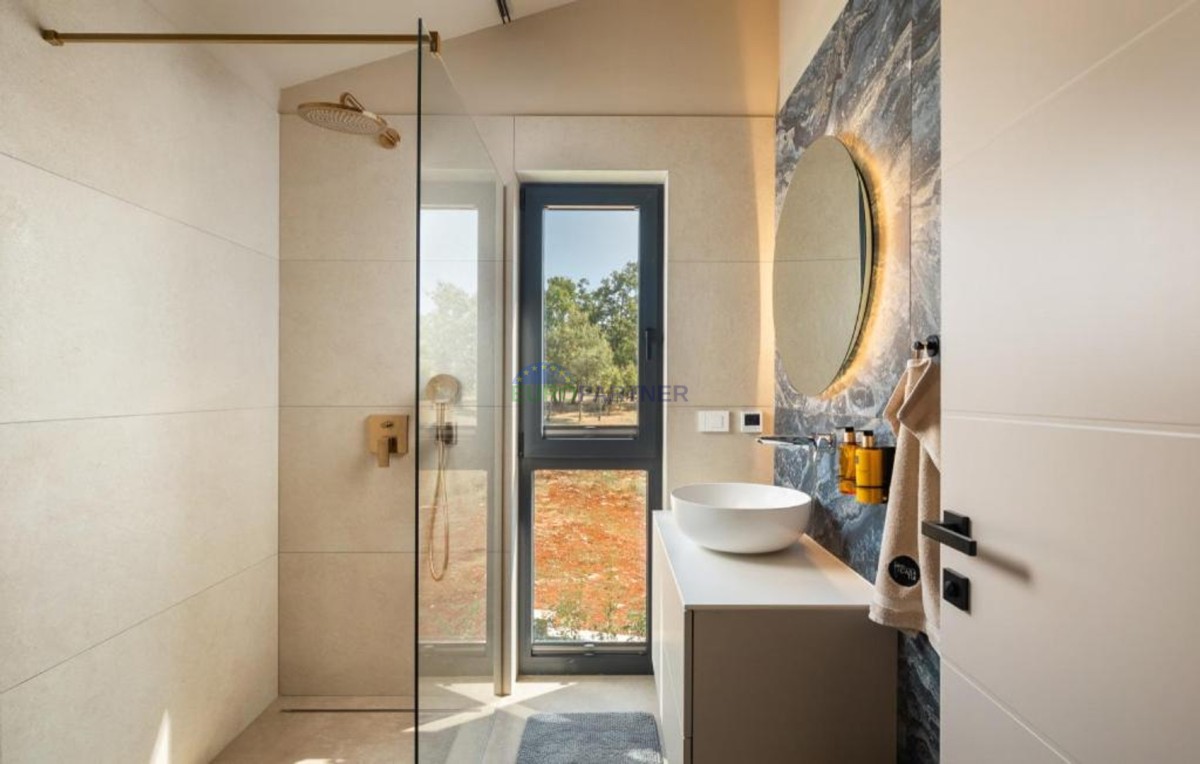 Ta dizajnerska vila dvojček se nahaja v bližini Poreča, v vasi le 4 km od centra Poreča.