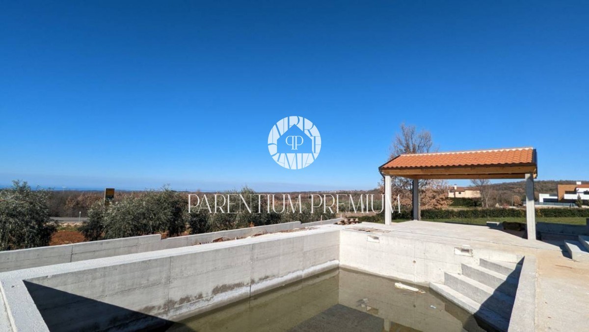 V pritličju hiše je spalnica, kopalnica, kuhinja in dnevna soba. Velika steklena stena vodi neposredno na teraso in sončno ploščad bazena, od koder se ponuja fenomenalen pogled na morje. Obstaja tudi možnost ureditve letne kuhinje.