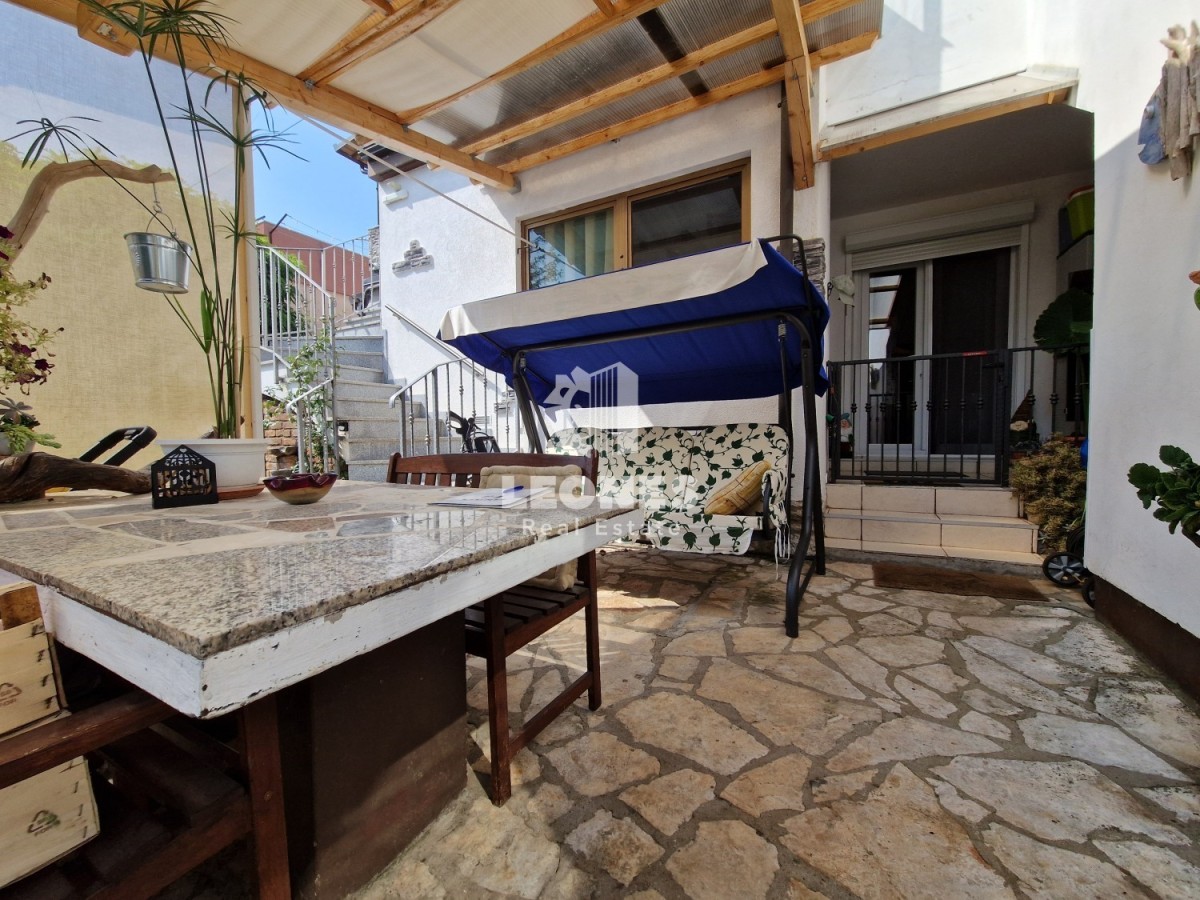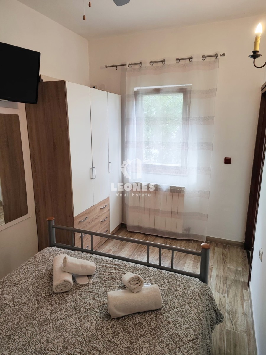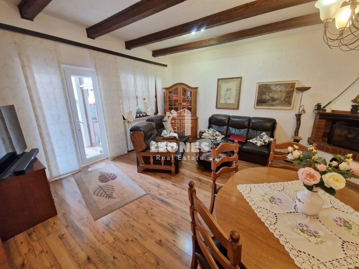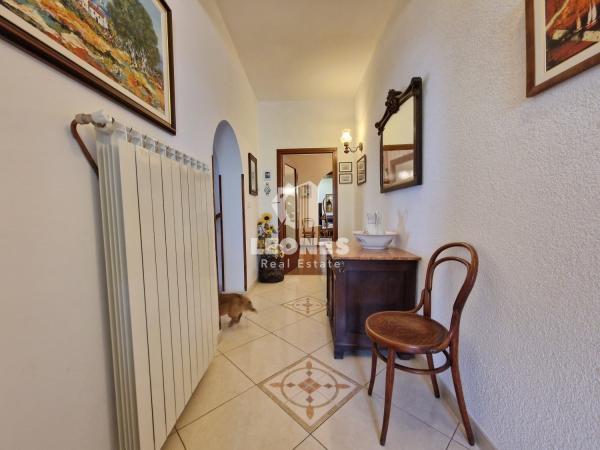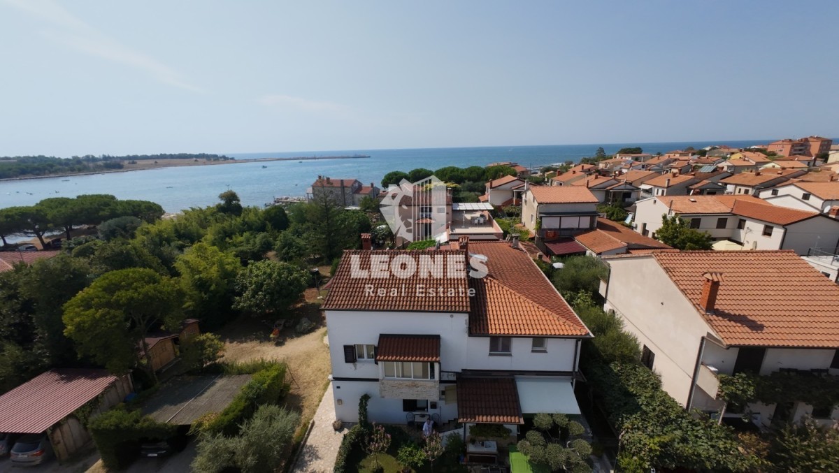 Prodamo dva pritlična apartmaja - druga vrsta do morja v Umagu. Skupna površina apartmajev je 136 m2. Večje stanovanje obsega verando, veliko dnevno sobo, kuhinjo, 3 spalnice, 2 kopalnici, shrambo in teraso. Manjše stanovanje je sestavljeno iz kuhinje, spalnice in kopalnice in je kategoriziran za turistični najem. Stanovanja za skupno uporabo imajo letno kuhinjo in kamin.