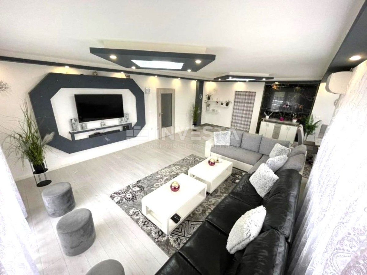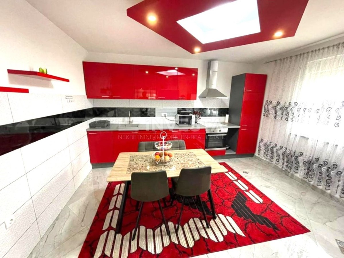 OPIS NEPREMIČNINE: Samostojna pritlična hiša, ki obsega 172 m² bivalne površine in prostoren vrt velikosti 907 m². Hiša ima prostoren vhodni hodnik, ki loči stanovanjski del na dva dela: del s tremi prostornimi spalnicami, vsaka velika 16 m², medtem ko dnevni del predstavlja odprta kuhinja in prostoren dnevni prostor z jedilnico. Objekt ima uporabno dovoljenje in energetski certifikat B, kar dodatno potrjuje kakovost gradnje. Ta hiša je lahko odlična priložnost za naložbo, bodisi kot družinski dom bodisi kot nepremičnina za turistične namene.