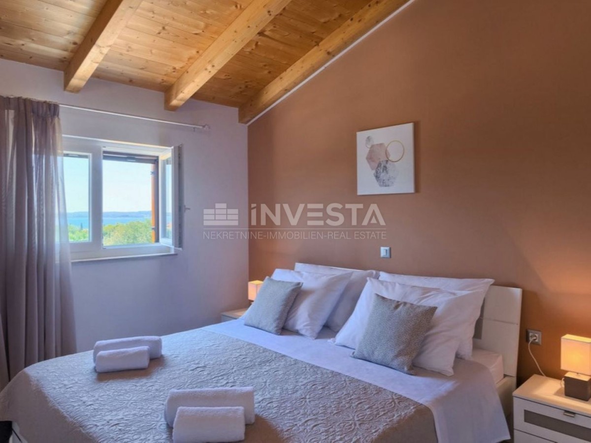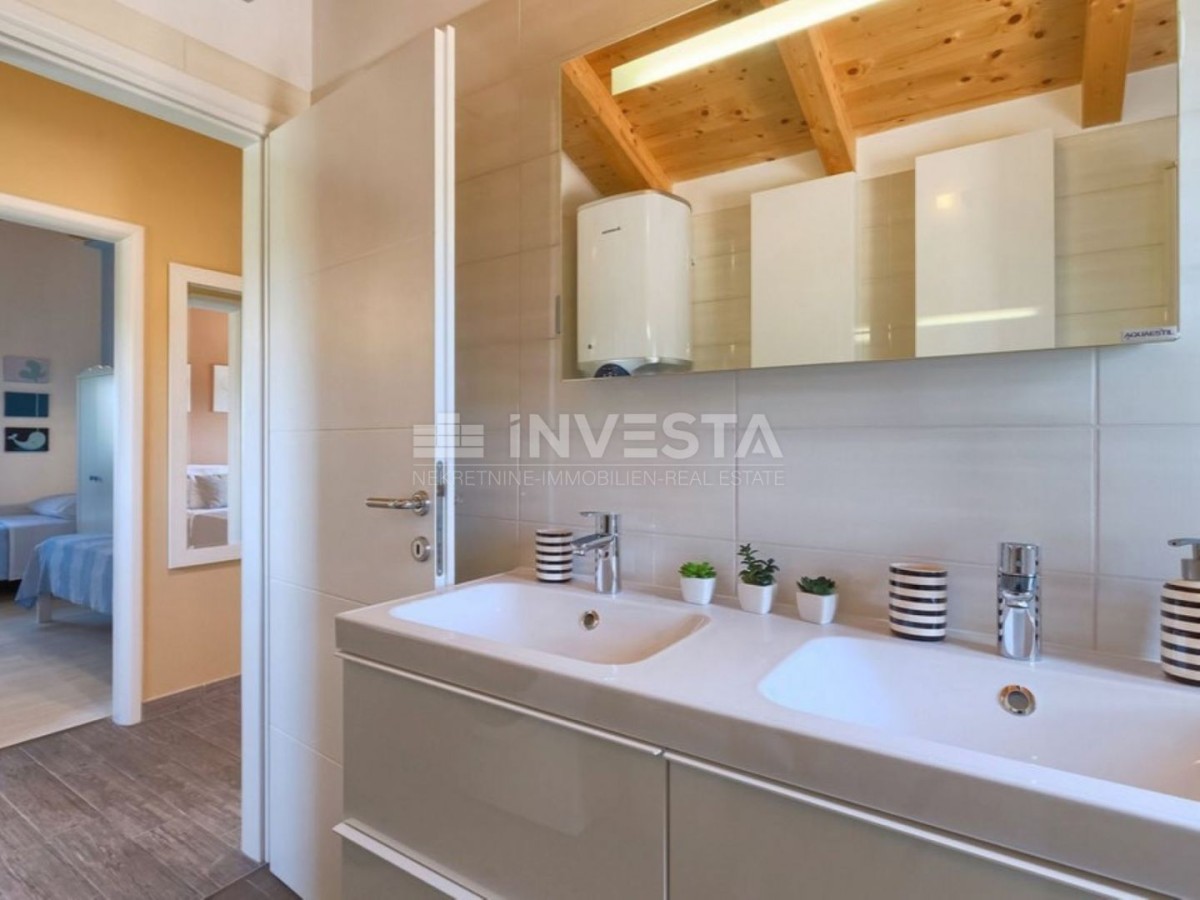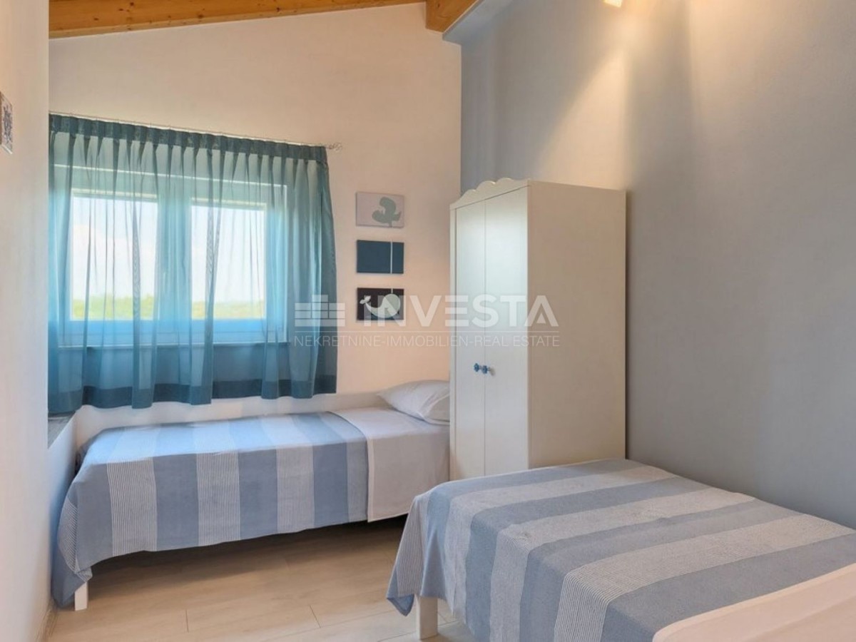 Ta čudovita vila se nahaja na mirni lokaciji in obsega 180m², s prostornim dvoriščem velikosti 2237m². Nepremičnina ponuja čudovit razgled na morje in Brionski arhipelag. Ogrevanje je na drva in s klimatskimi napravami. Fasada je toplotno izolirana z 8 cm debelim slojem izolacije, kar omogoča precejšnje prihranke energije. Okna so opremljena s PVC okvirji in visokokakovostnimi ALU žaluzijami. Tla so prekrita z visokokakovostnim parketom in ploščicami. Okoliščina je popolnoma ograjena z kamnitim zidom, na voljo pa je tudi zunanji žar. Za dodatno varnost je nepremičnina opremljena z alarmnim sistemom.