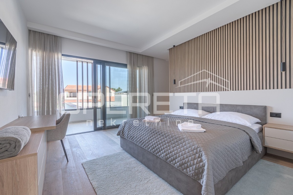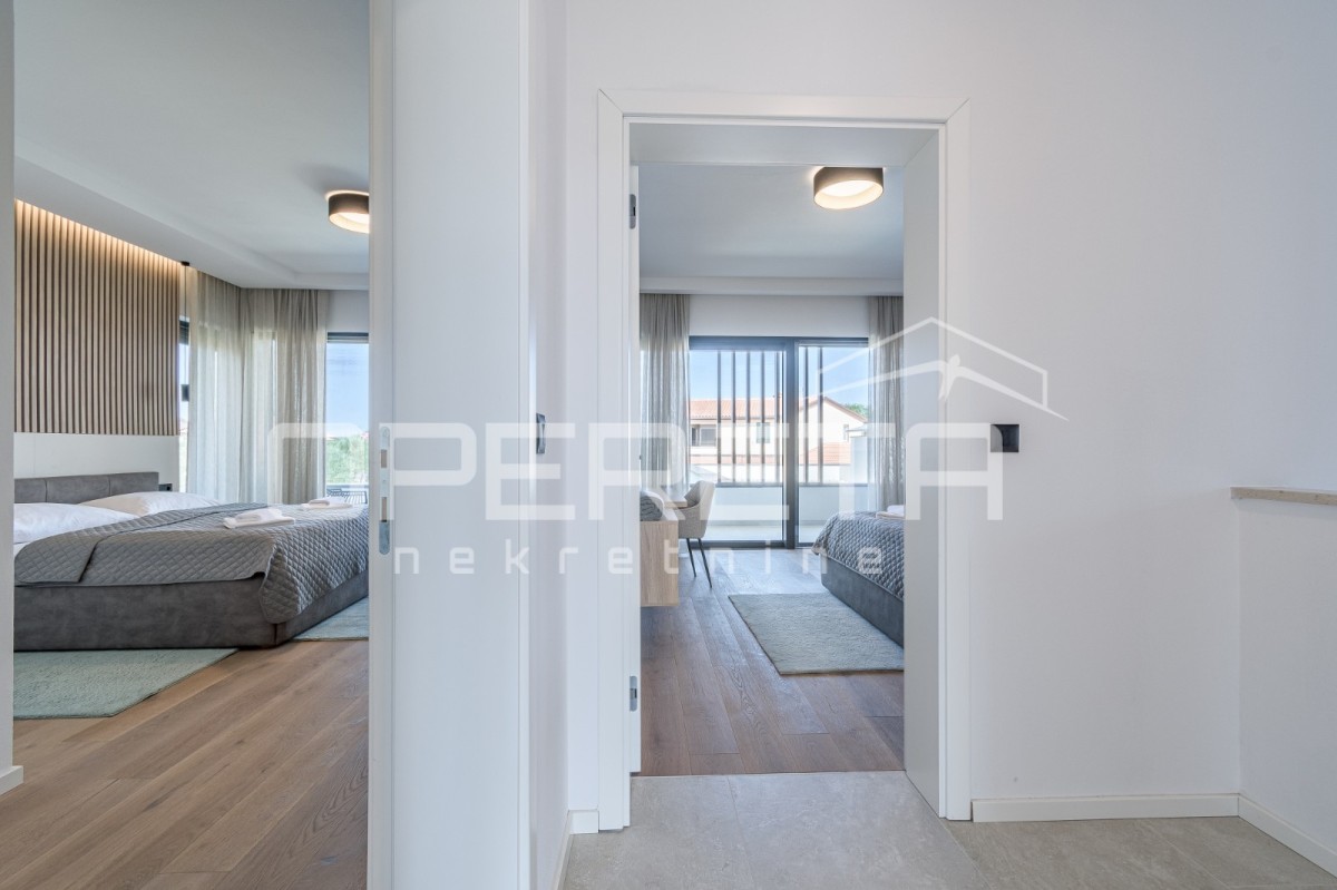 Predstavljamo vam redko priložnost za lastništvo elegantne, popolnoma opremljene in nove vile, ki se nahaja v mirni oazi na obrobju Poreča. Ta izjemna nepremičnina, s skupno površino 218 m², je popolna sinergija luksuznega družinskega doma in vrhunske naložbe v turizem.