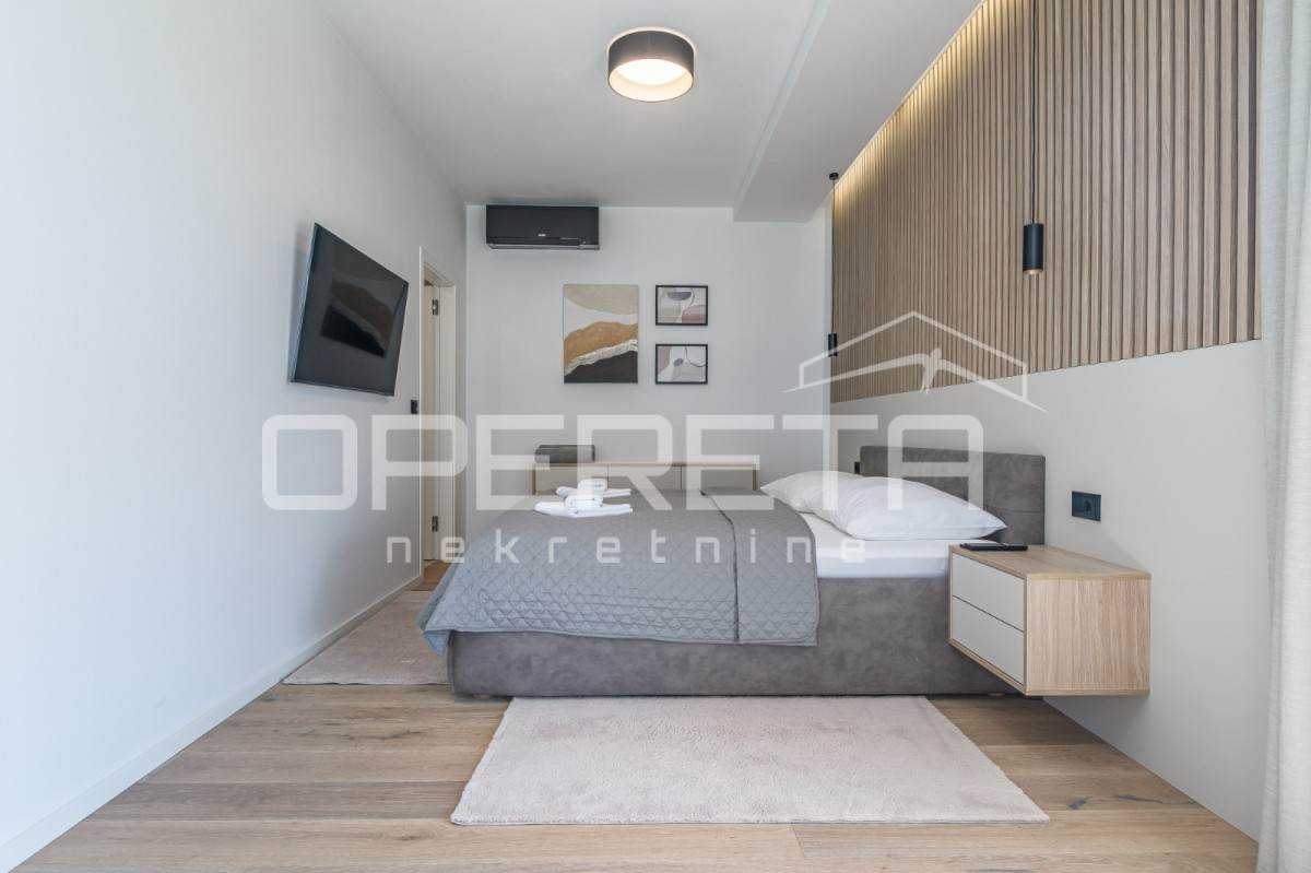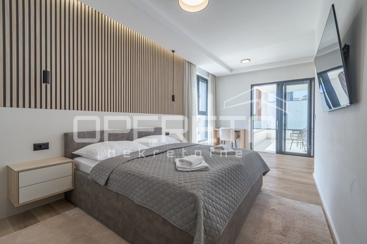Vstopite v svet prefinjenega udobja, kjer je vsak detajl skrbno zasnovan. Vila ponuja prostorno kuhinjo z jedilnico, elegantno opremljeno in po meri izdelano, kar ustvarja popoln prostor za družinska srečanja in druženje. V pritličju se nahaja prostorna spalnica z lastno kopalnico, ki zagotavlja izjemno praktičnost in zasebnost, idealno za goste ali kot glavna spalnica. Pritličje vključuje tudi diskretno stranišče za goste. V zgornjih nadstropjih vas čakajo tri prostorne spalnice, vsaka z lastno luksuzno kopalnico, ki zagotavlja maksimalno udobje vsem prebivalcem.
