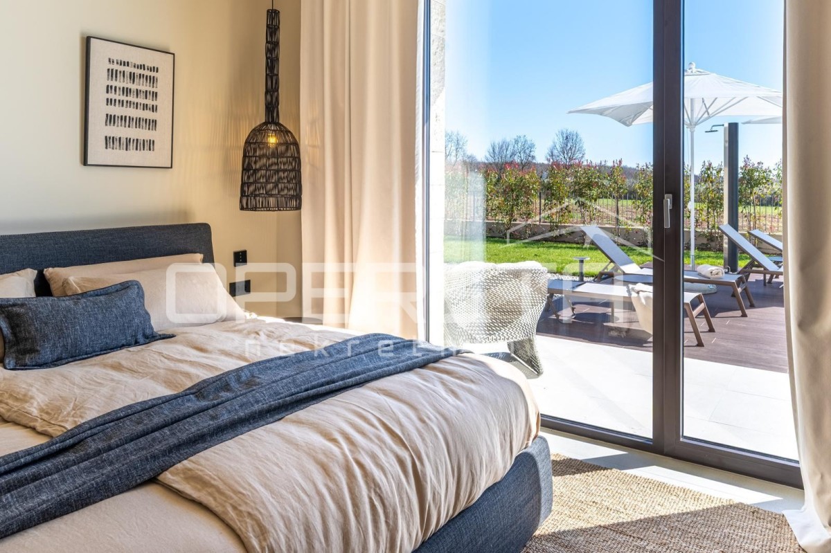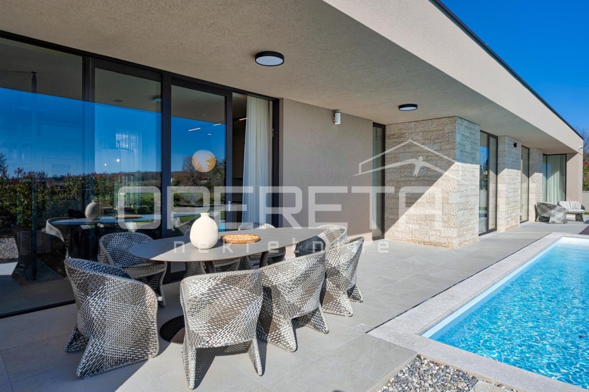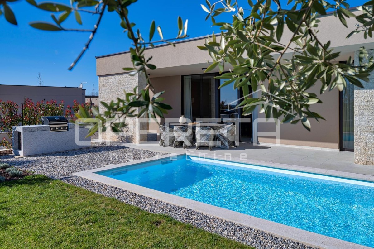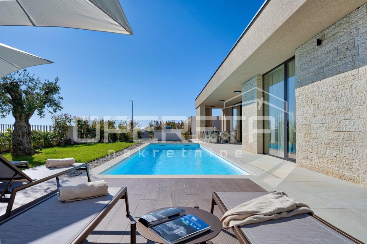 Istra, Kaštelir – Moderna pritlična vila z urejenim vrtom in pogledom na morje