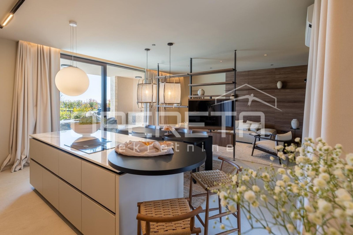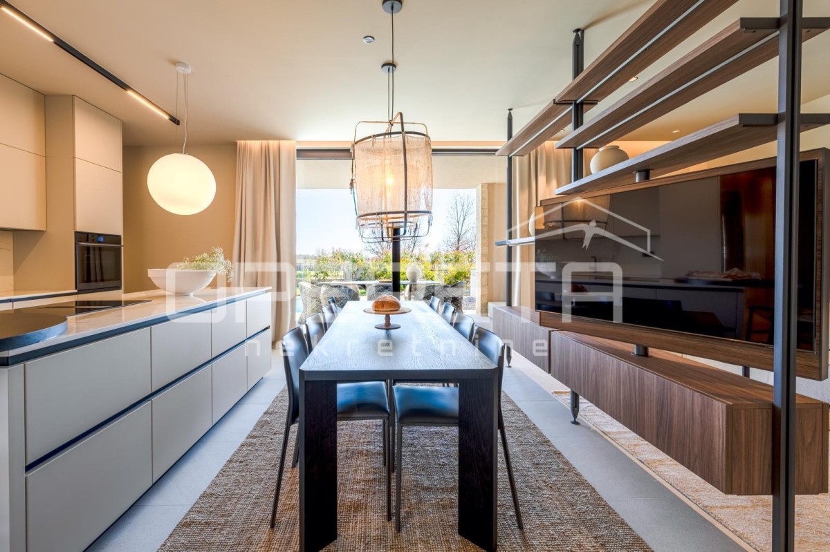 Notranjost je v celoti opremljena s pohištvom priznanih blagovnih znamk, medtem ko troslojna stekla, aluminijasto stavbno pohištvo in kakovostne keramične talne obloge dodatno poudarjajo nivo izvedbe.