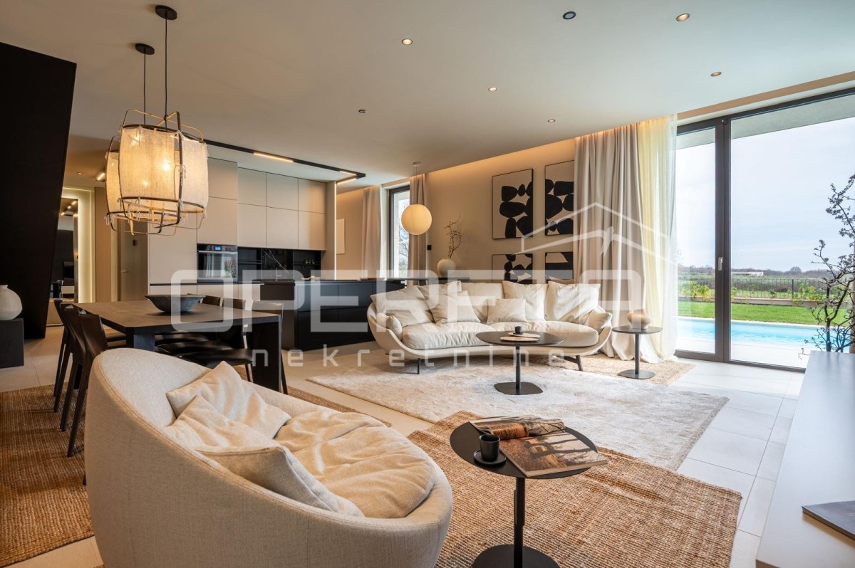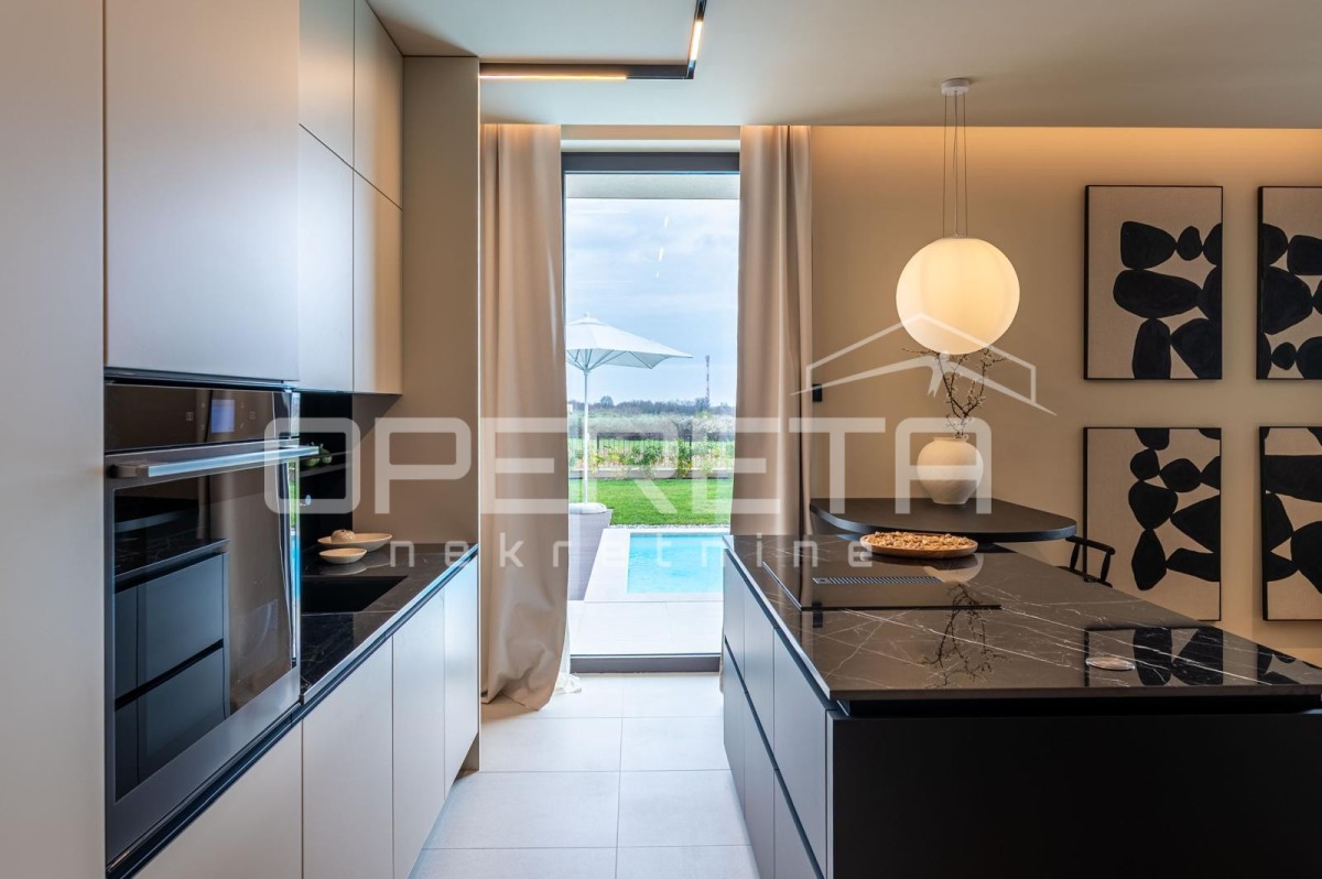 Moderno opremljena vila, ki predstavlja popolno kombinacijo razkošja, udobja in sodobne tehnologije.