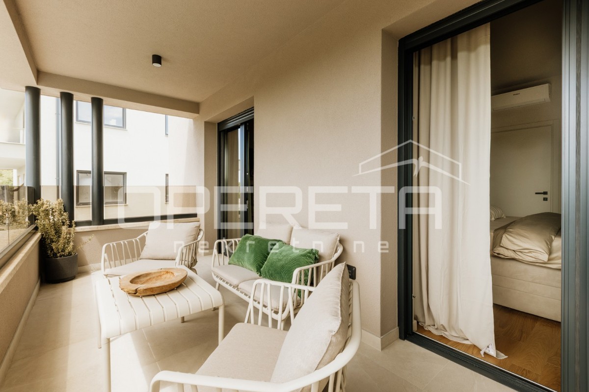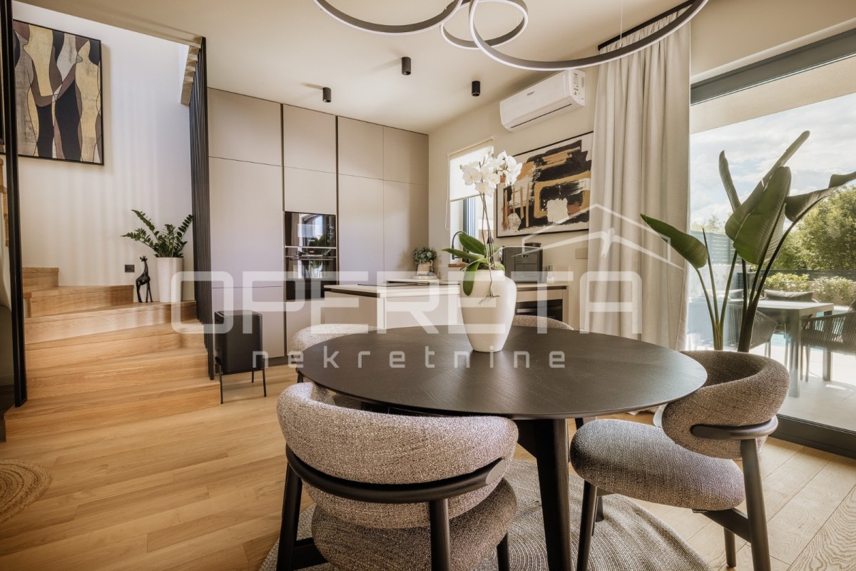Nepremičnina je zgrajena iz kakovostnih materialov, opremljena s talnim ogrevanjem, klimatsko napravo in ima pripravo za solarni sistem. Pripadata ji tudi dve zasebni parkirni mesti.