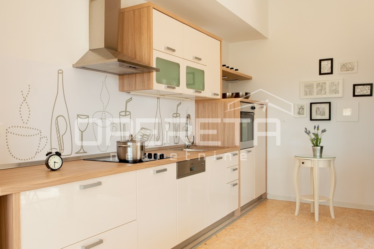 Bivalni del sestavljajo prostorna kuhinja, jedilnica in udobna dnevna soba z dostopom na vrt skozi velike steklene stene. Veliko naravne svetlobe v kombinaciji s toplimi lesenimi detajli ustvarja prijetno vzdušje skozi vse leto.