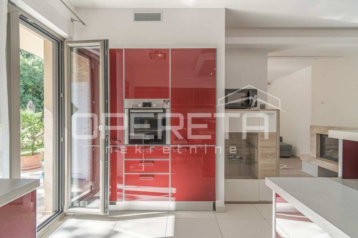 Nepremičnina je opremljena s sodobnimi sistemi: električno talno gretje, klimatske naprave v vseh prostorih, solarni paneli za toplo vodo in kamin v pritličju.