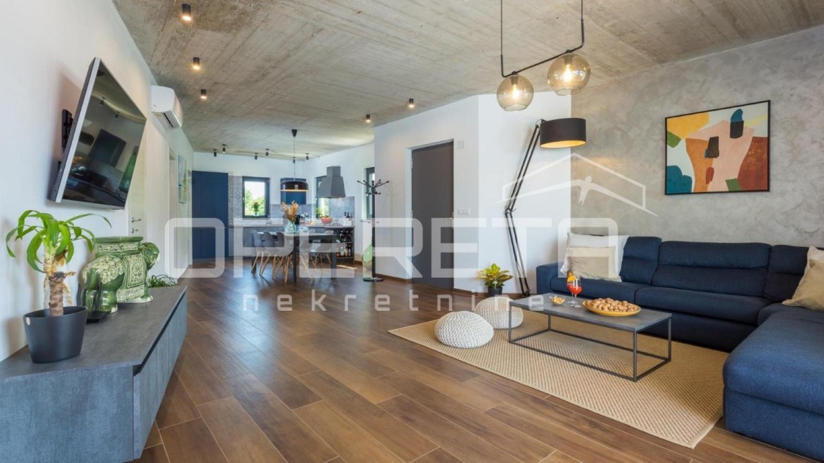 Iz naše ponudbe predstavljamo moderno dvojno hišo s površino 129 m², ki se nahaja na mirni lokaciji, le 4 km od Poreča. Hiša se razteza v dveh etažah na ograjenem zemljišču velikem 250 m².