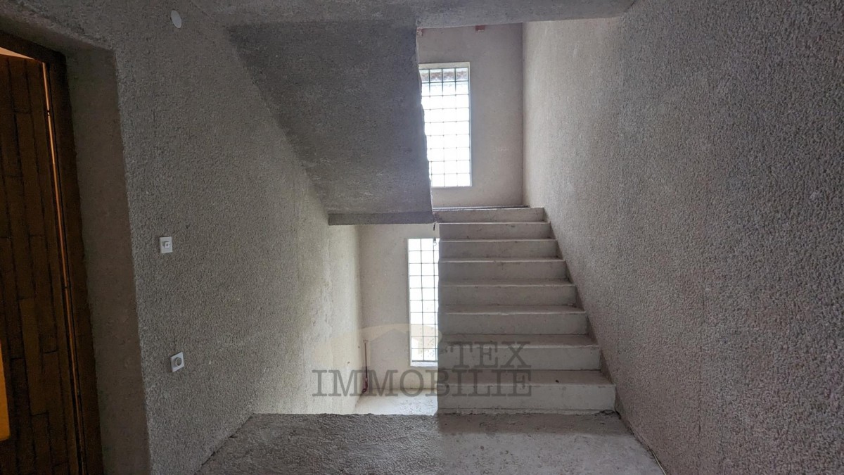 V pritličju je stanovanje, ki ponuja dnevno sobo, dve spalnici in kopalnico.