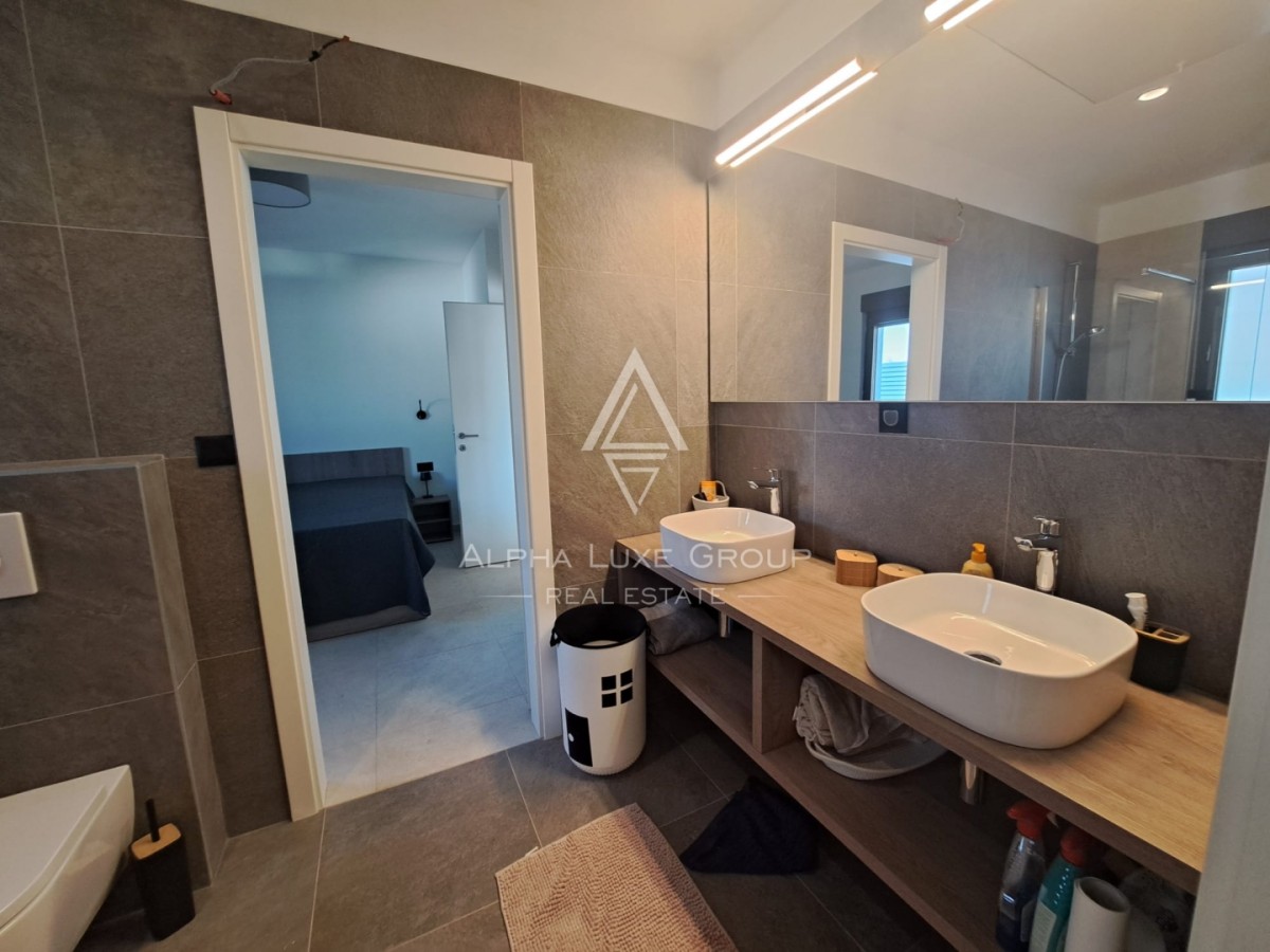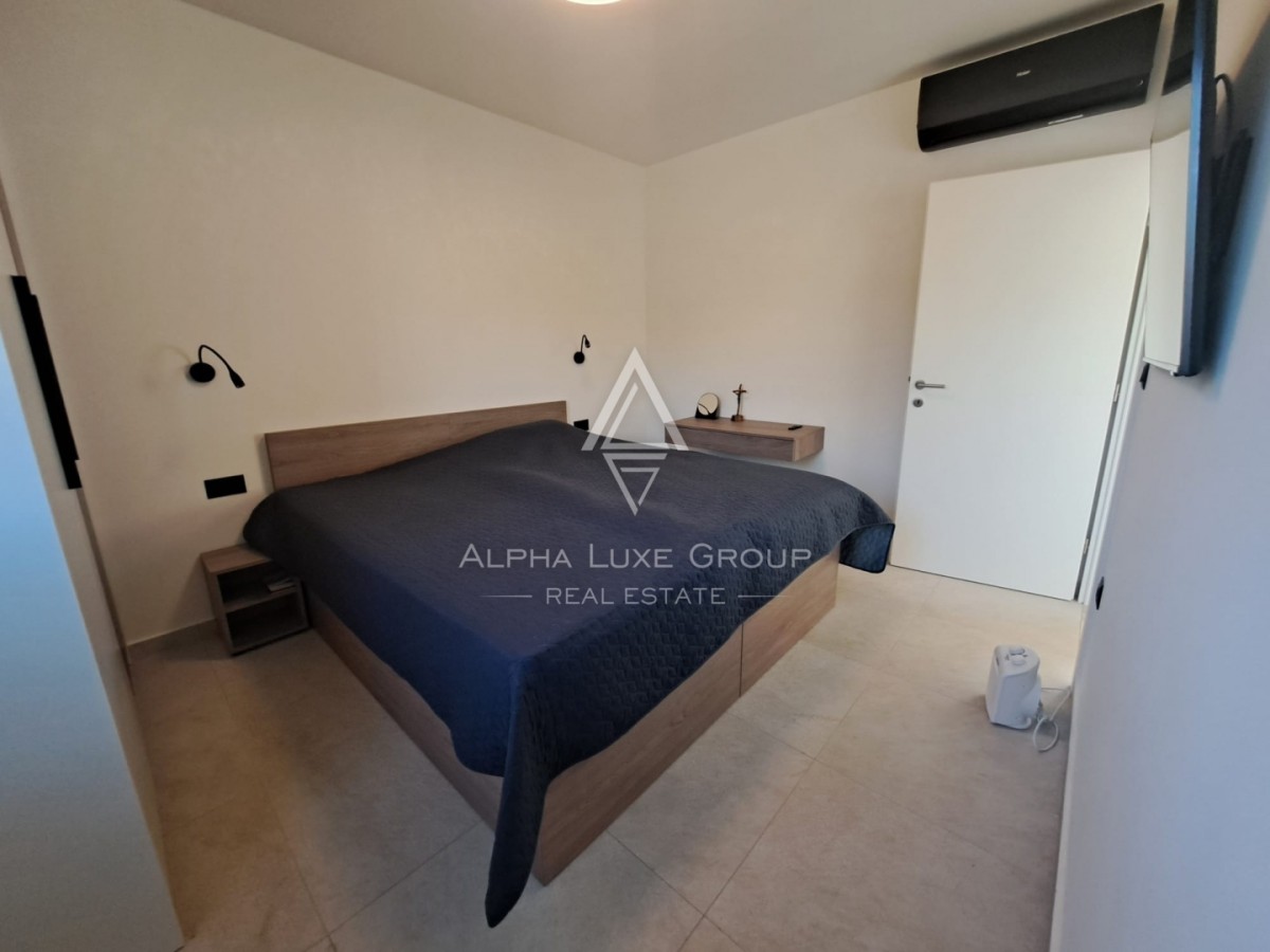 Vila ima 98 m² bivalne površine na parceli velikosti 567 m². Odprt tloris z velikimi steklenimi površinami omogoča veliko naravne svetlobe in enostaven dostop do vseh prostorov. Vključuje dve spalnici, kopalnico in ločen WC. Vrt krasi ogrevan bazen velikosti 30 m², pokrita terasa z zunanjo kuhinjo ter parkirišče za najmanj dve vozili.