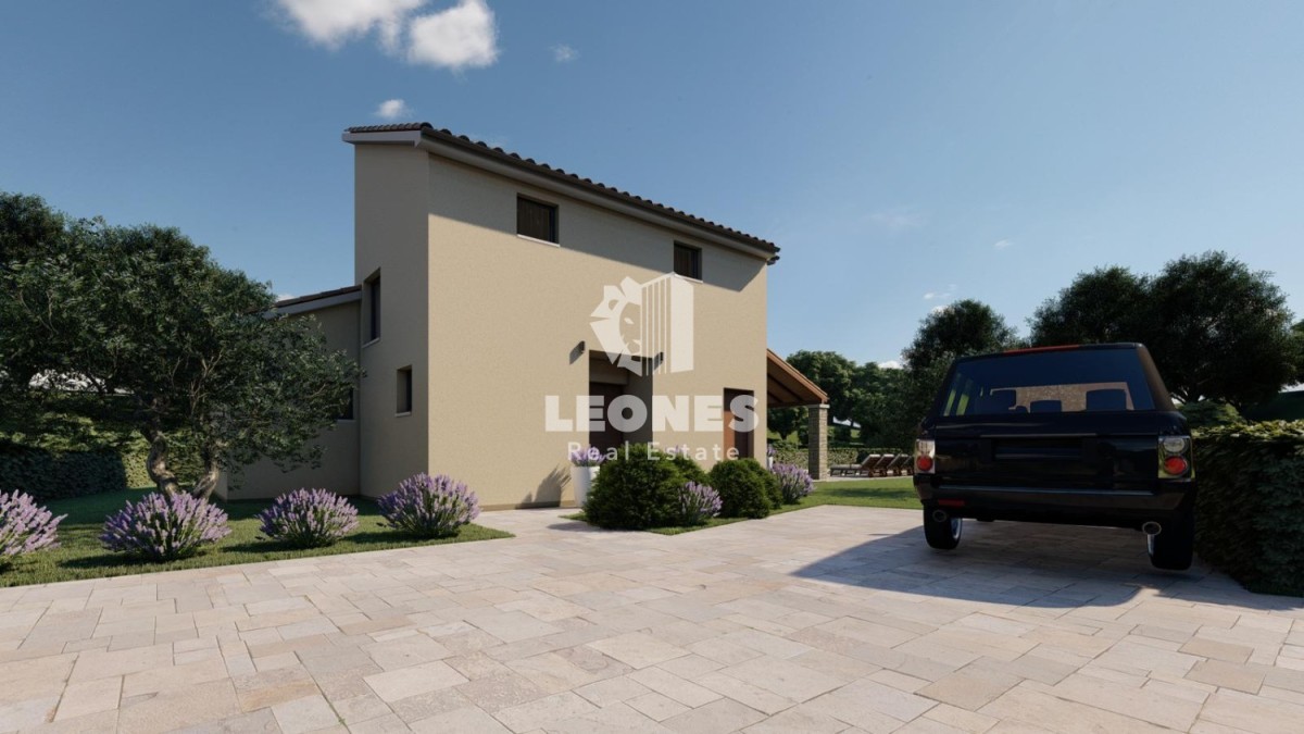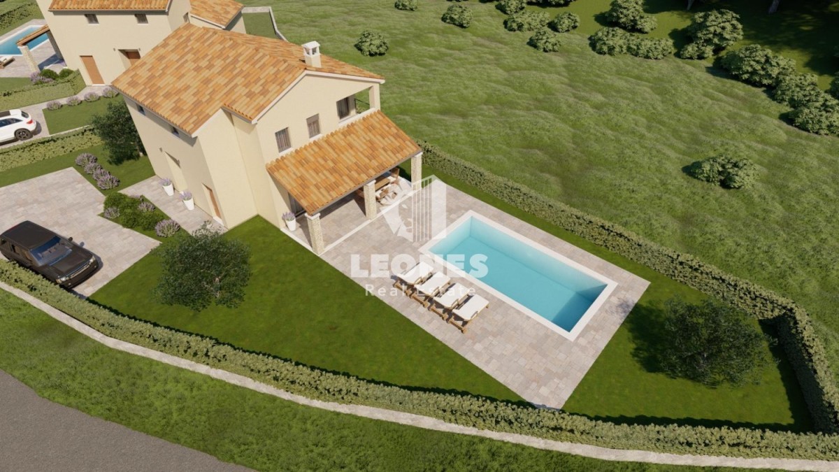 Prodaja se samostojna hiša z bazenom v okolici Buzeta. Neto uporabna površina hiše je 161,71 m2, površina zemljišča pa 795 m2. Hiša se razprostira na dveh etažah. Pritličje obsega dnevno sobo, kuhinjo z jedilnico, spalnico s kopalnico in shrambo. Prvo nadstropje sestavljata 2 spalnici, vsaka s svojo kopalnico. Glavna spalnica ima izhod na teraso s čudovitim pogledom na zelenje in istrsko pokrajino. Na vrtu je bazen s prostorom za sončenje.