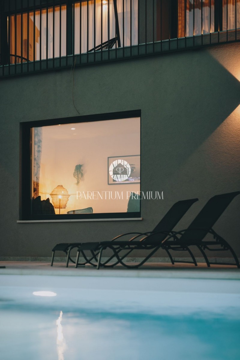 Samostojna hiša z bazenom se nahaja na mirni lokaciji 17 km od Poreča in morja.
