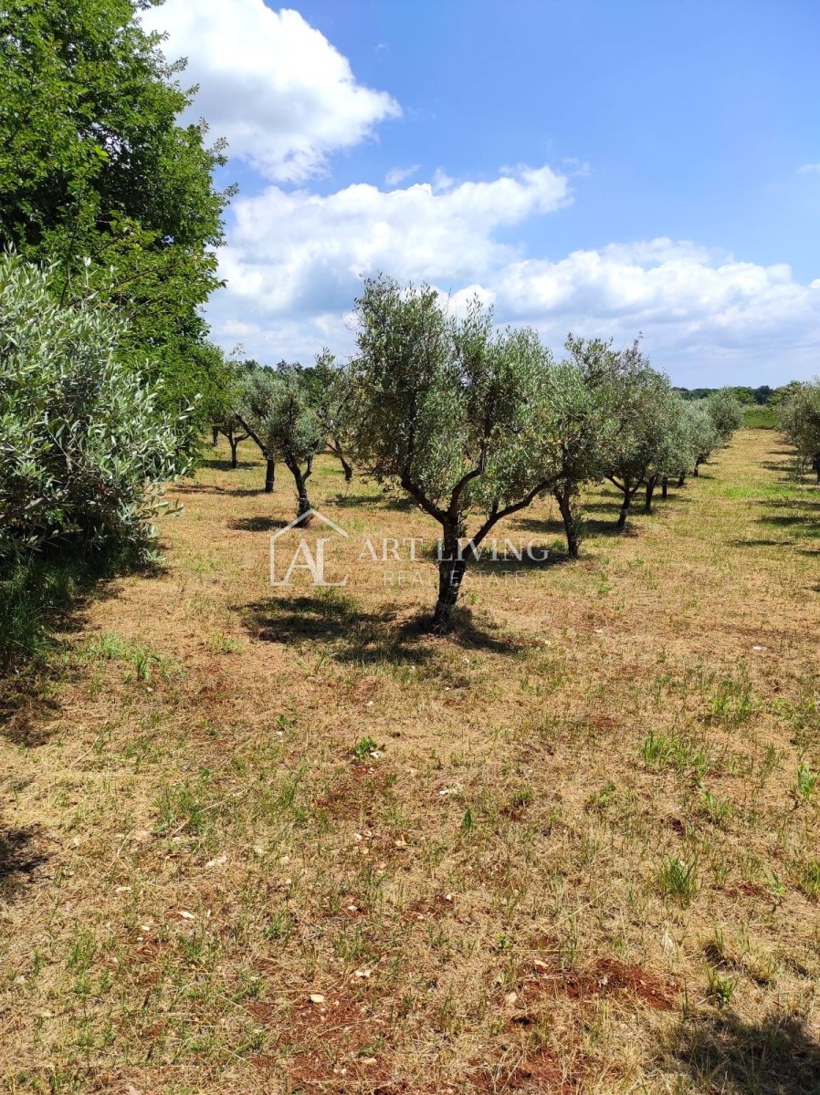 Na prodaj atraktivno kmetijsko zemljišče – velik oljčnik, ki obsega približno 3.280 m², z 80 zasajenimi oljkami, ki so v polnem rodnem obdobju. Zemljišče se nahaja na zahodni obali Istre, le 13 km od Poreča.