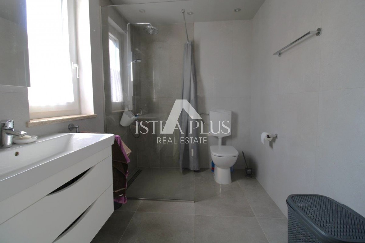 Družinska hiša, kakovostno grajena končna hiša, s skupno površino 136,38 m², ki se razprostira v treh nadstropjih, se nahaja na mirni lokaciji na robu vasi, le 5 km od mesta in morja.