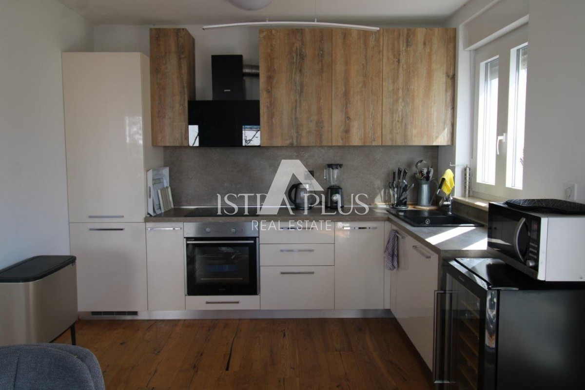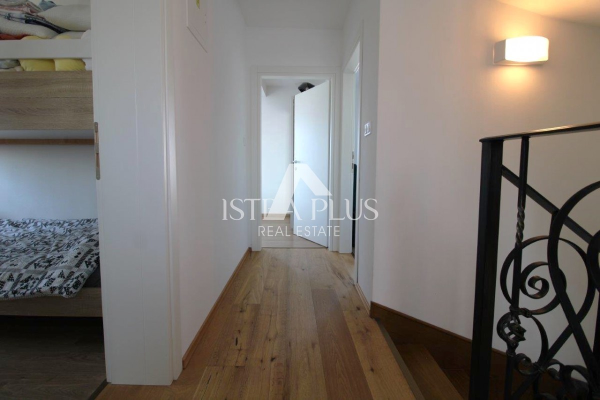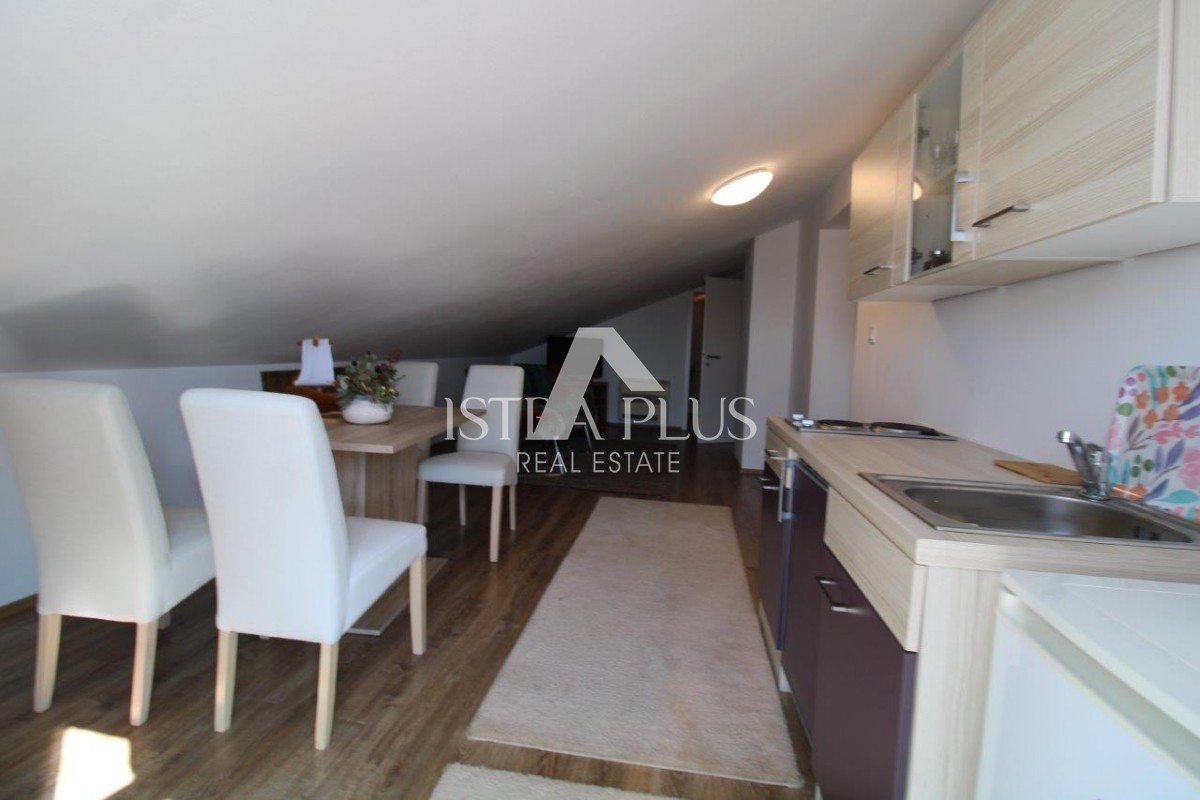 Mansarda je urejena kot ločena stanovanjska enota - stanovanje, ki ga sestavljajo kuhinja z dnevnim delom in dostopom do terase s pogledom na morje, kopalnica, spalnica in shramba, kar zagotavlja dodatno fleksibilnost uporabe.