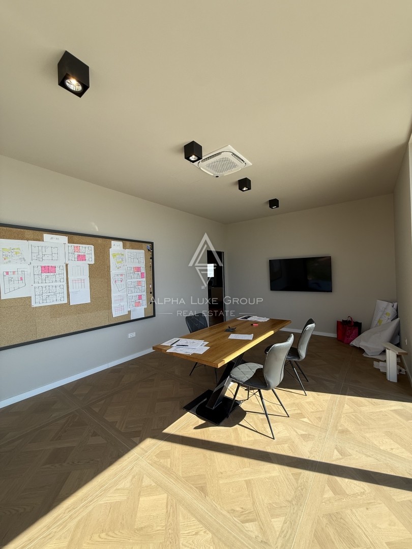 Prvo nadstropje, veliko 244,71 m², je popolnoma opremljeno in trenutno urejeno kot funkcionalni pisarniški prostor. Vključuje recepcijo, sejno sobo, štiri pisarne, popolnoma opremljeno kuhinjo ter tri kopalnice, od katerih ima ena tuš. Pokrita terasa zagotavlja dodatno udobje in predstavlja idealen prostor za neformalne sestanke ali sprostitev zaposlenih. Ta etaža omogoča takojšnje poslovanje brez dodatnih vlaganj.