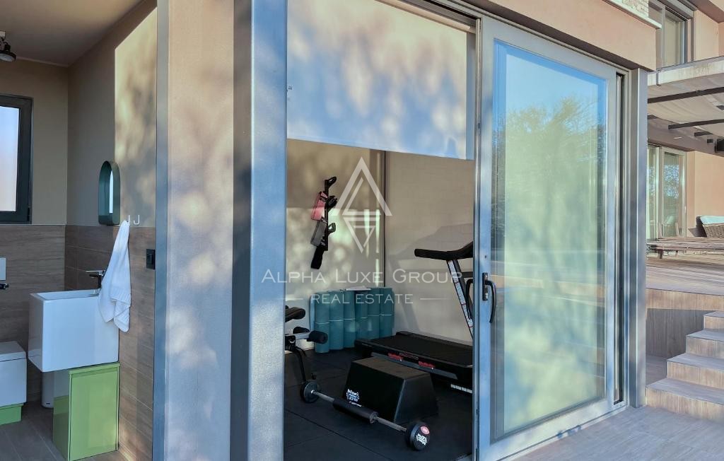 Urejen vrt vključuje popolnoma integrirano pokrito letno kuhinjo, idealno za druženje in obedovanje na prostem. Pomožni objekt vsebuje pisarno, kopalnico in pralnico, kar povečuje funkcionalnost in zasebnost za goste ali delo od doma. Osrednji del vrta je eleganten bazen s teraso za sončenje, obdan z mediteranskim rastlinjem, ki še poudari prefinjen značaj vile.