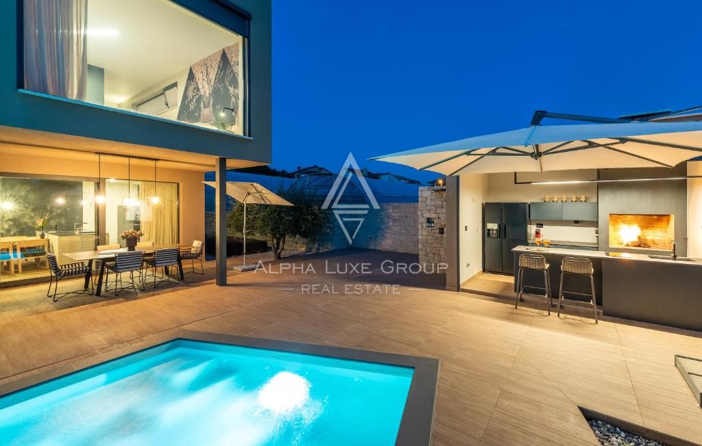 V mirnem naselju blizu Umaga se nahaja sodobna oblikovalska rezidenca, ki ponuja izjemen bivalni standard, vrhunske dodatne vsebine in prefinjen arhitekturni slog. Nepremičnina je skrbno načrtovana in zgrajena po najvišjih stanovanjskih standardih, s poudarkom na modernem dizajnu, kakovostnih materialih in premišljeno zasnovanih notranjih ter zunanjih prostorih. Hiša je zasnovana kot ena stanovanjska enota na dveh nadstropjih, kar zagotavlja udobje, eleganco in funkcionalnost skozi vse leto.