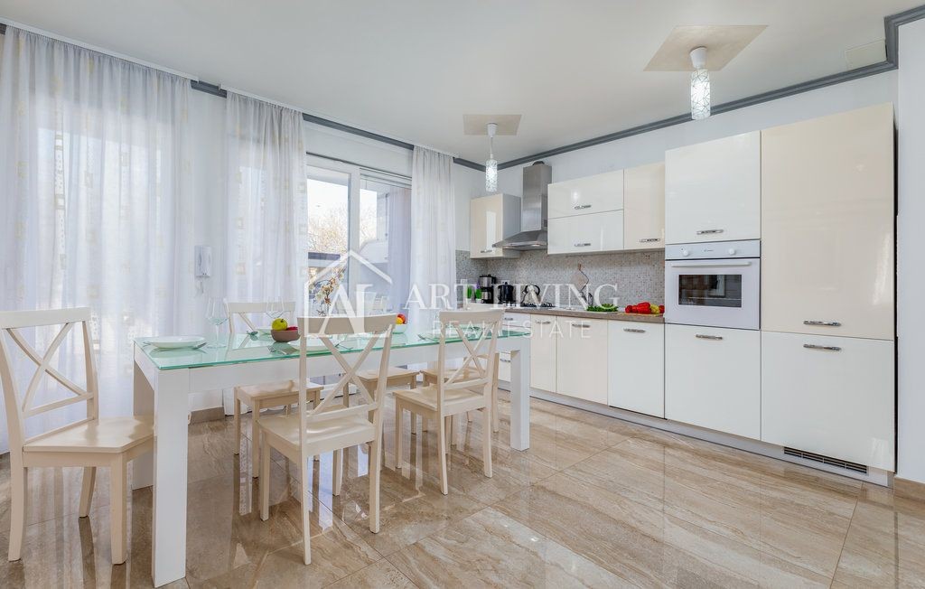 Hiša izžareva prostornost in udobje, v pritličju se nahajata 2 apartmaja, vsak s površino cca. 66 m2, vsaka s svojim vhodom. Sestavljeni so iz odprtega dnevnega prostora, povezanega s kuhinjo in jedilnico, dveh spalnic in moderne kopalnice. Dnevna soba in kuhinja ponujata neposreden dostop do pokrite terase velikosti 14 m2 in lepo urejenega dvorišča - idealnega kraja za sprostitev in uživanje na prostem.