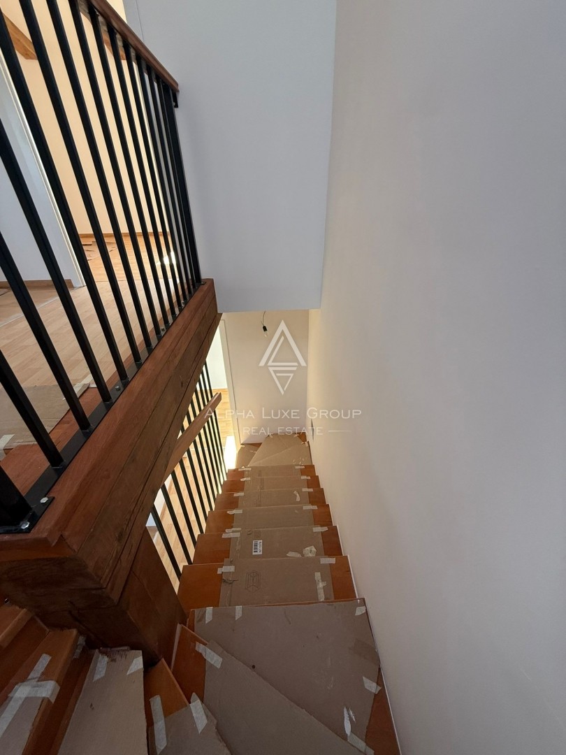 V zgornjem nadstropju so štiri prostorne spalnice in dve kopalnici, ki zagotavljajo udobje in zasebnost, notranje stopnišče pa omogoča gladke prehode med nadstropji. Pritličje nudi neposreden dostop do urejenega dvorišča in zunanjih površin.