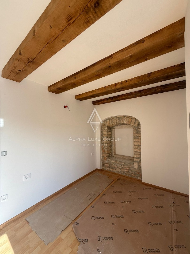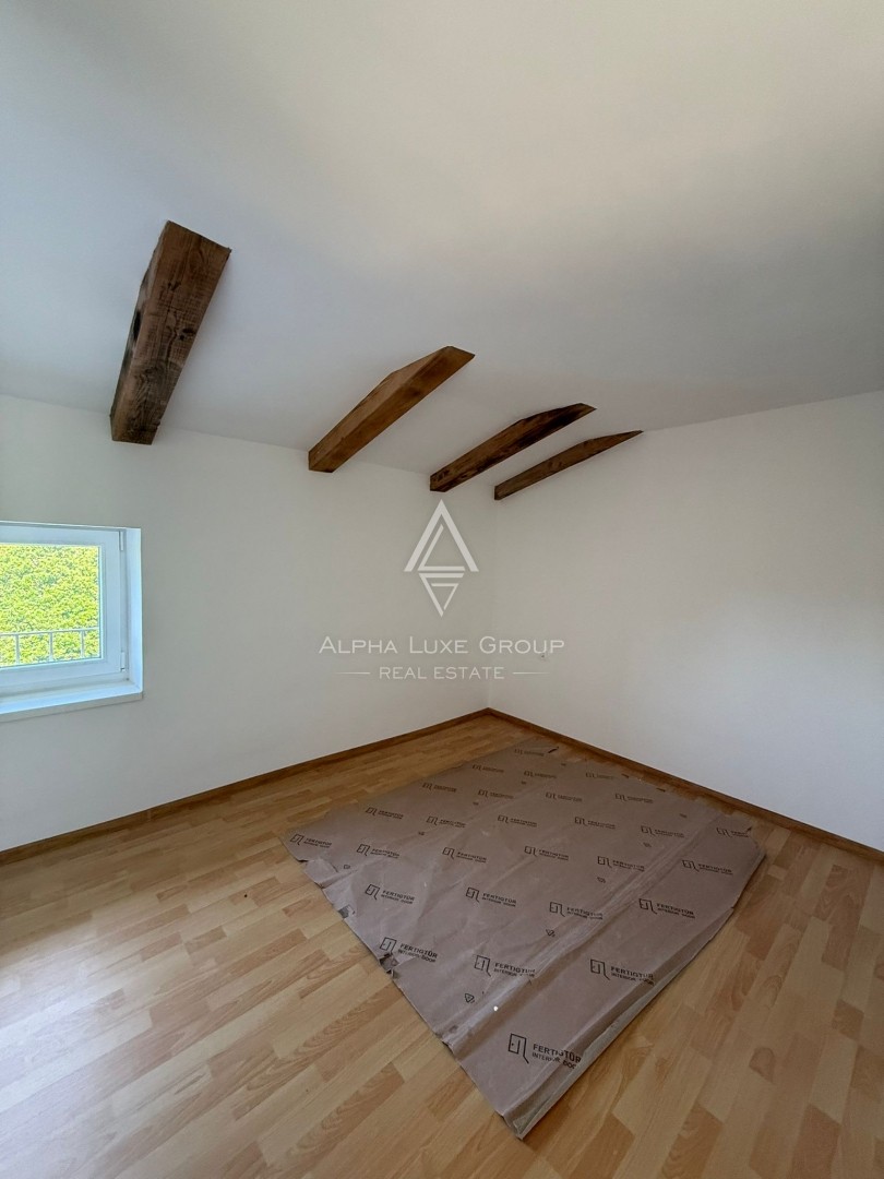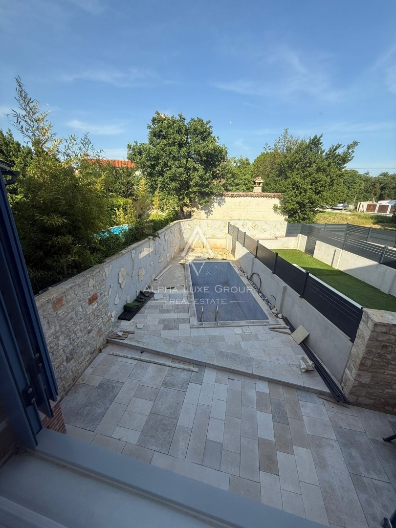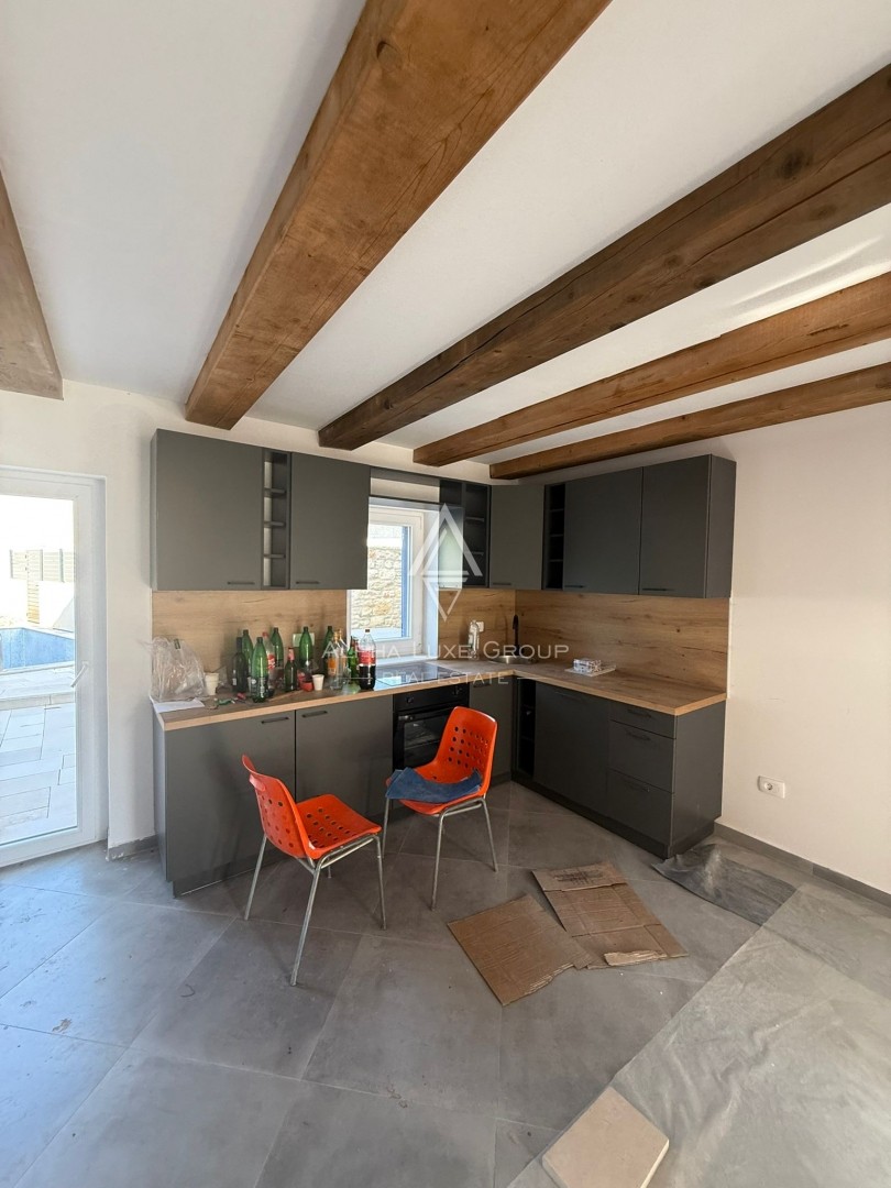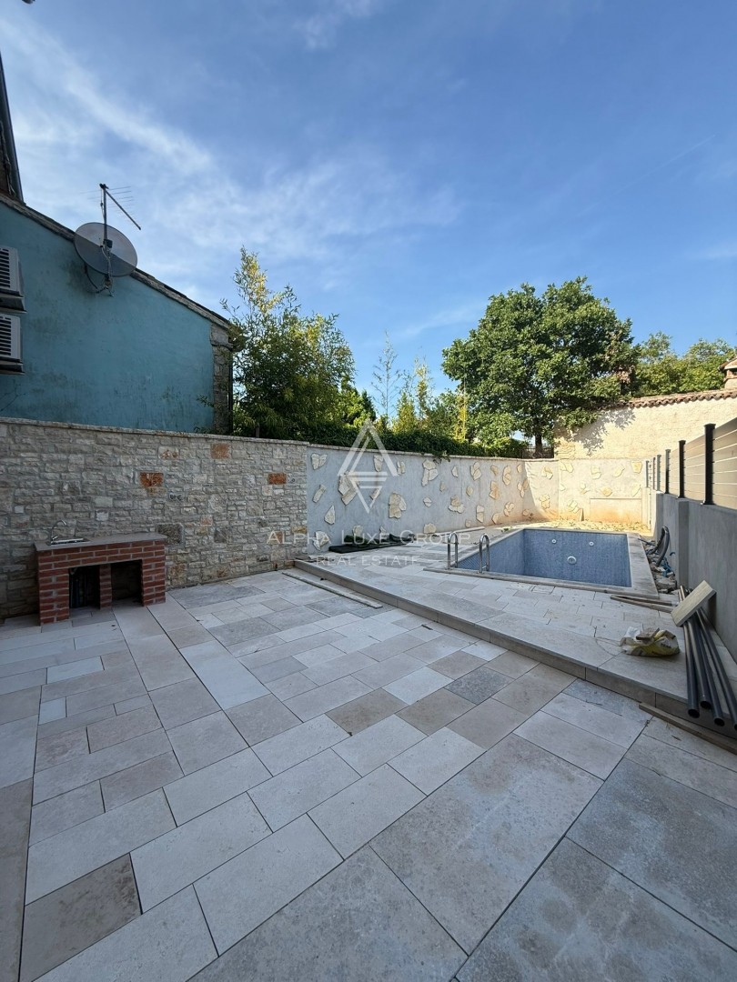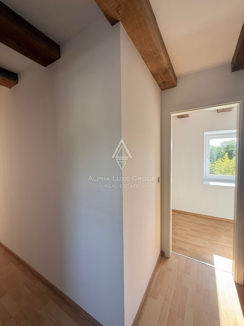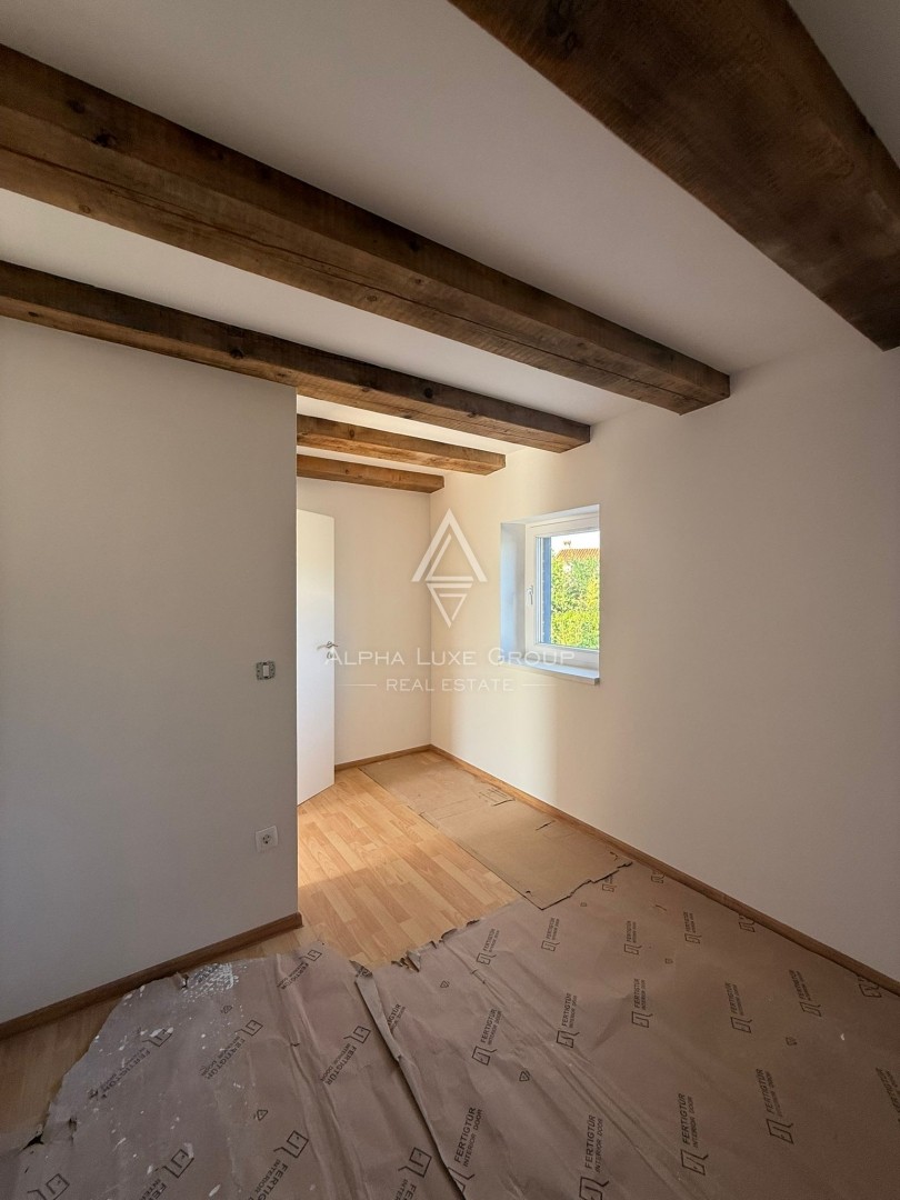 V mirni slepi ulici v tradicionalni istrski vasici Juršići se nahaja na novo zgrajena kamnita vrstna hiša, ki združuje brezčasen značaj in sodobno udobje. Razprostira se na treh etažah s skupno površino 140 m² in vključuje prijetno dnevno sobo, kuhinjo z jedilnico ter stranišče za goste v pritličju. Odprt tloris vodi neposredno na sončno teraso in zasebni bazen velikosti 15 m² – popoln za sprostitev na prostem.