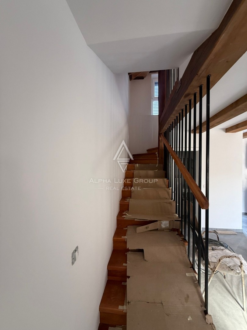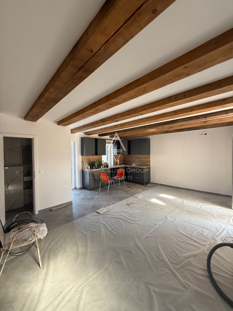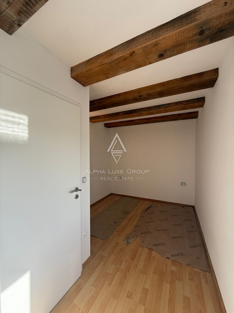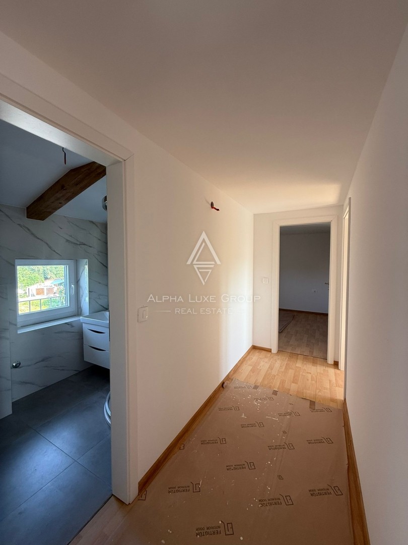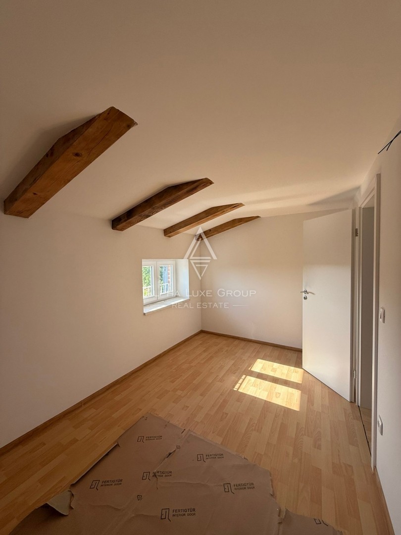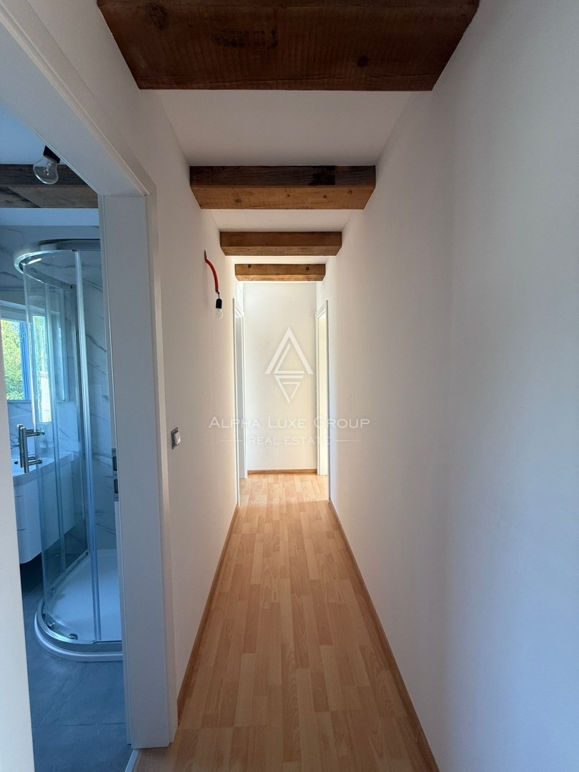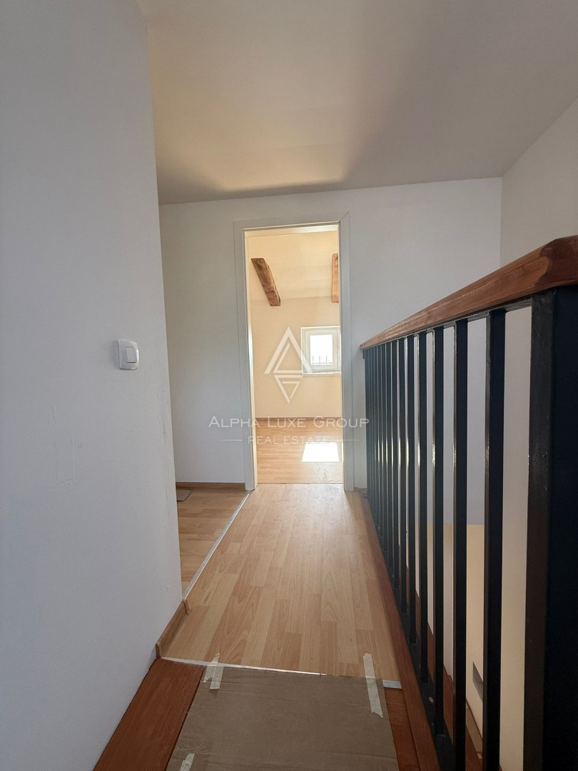 V mirni slepi ulici v tradicionalni istrski vasici Juršići se nahaja na novo zgrajena kamnita vrstna hiša, ki združuje brezčasen značaj in sodobno udobje. Razprostira se na treh etažah s skupno površino 140 m² in vključuje prijetno dnevno sobo, kuhinjo z jedilnico ter stranišče za goste v pritličju. Odprt tloris vodi neposredno na sončno teraso in zasebni bazen velikosti 15 m² – popoln za sprostitev na prostem.
