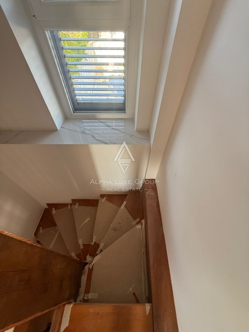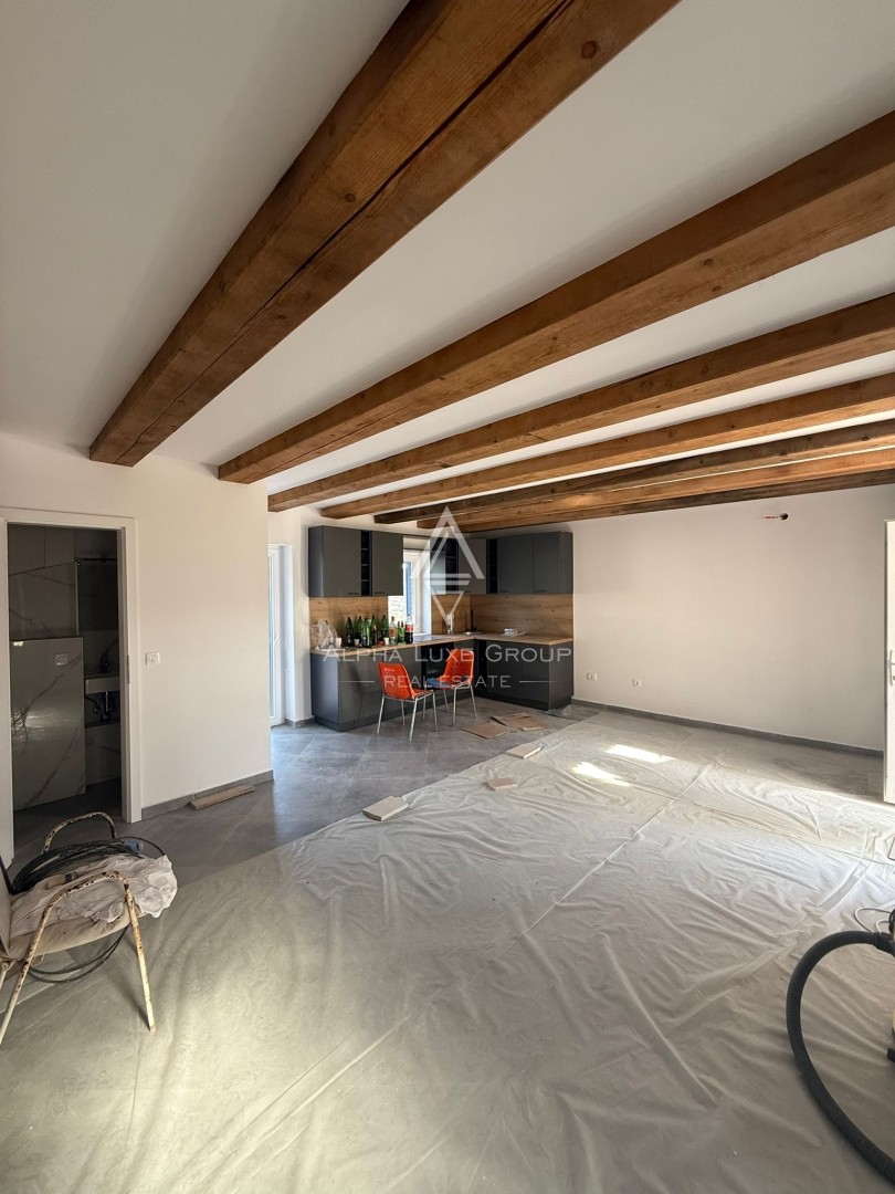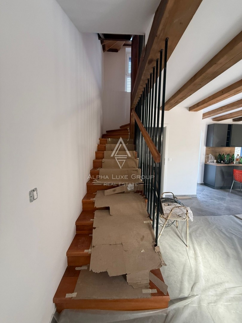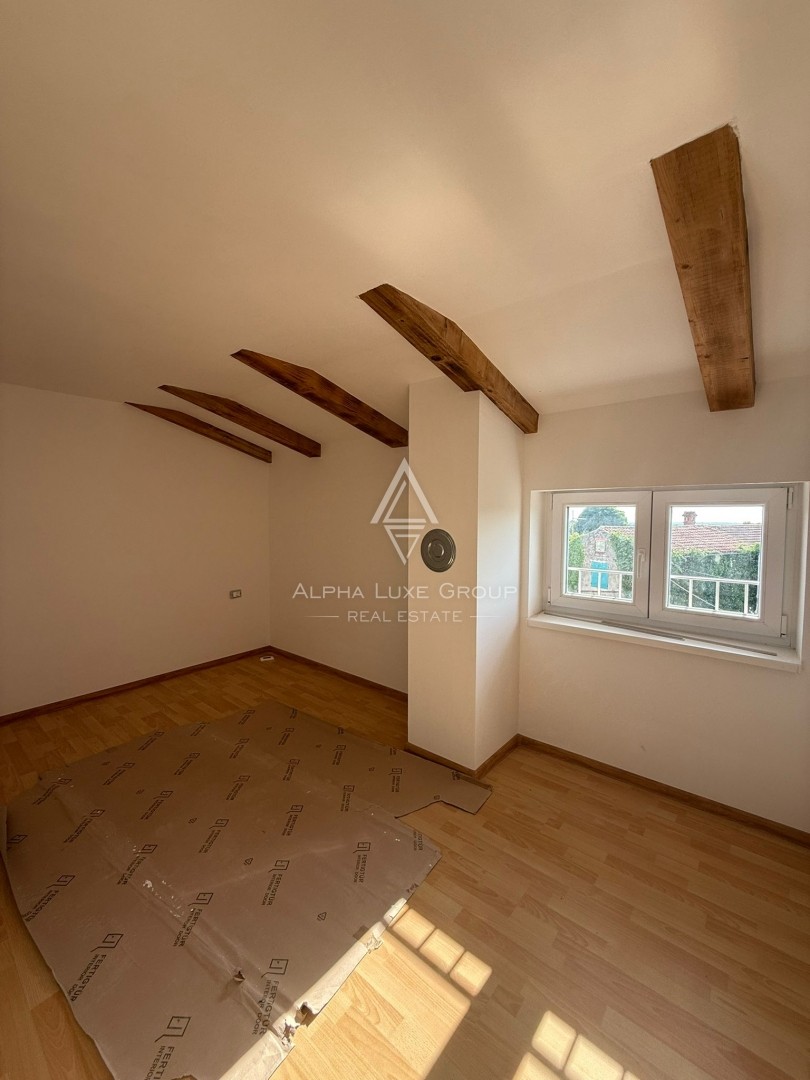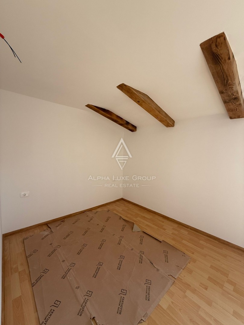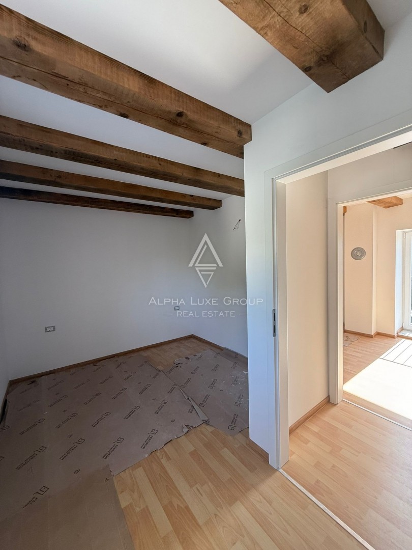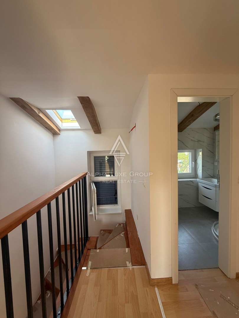 V mirni slepi ulici v tradicionalni istrski vasici Juršići se nahaja na novo zgrajena kamnita vrstna hiša, ki združuje brezčasen značaj in sodobno udobje. Razprostira se na treh etažah s skupno površino 140 m² in vključuje prijetno dnevno sobo, kuhinjo z jedilnico ter stranišče za goste v pritličju. Odprt tloris vodi neposredno na sončno teraso in zasebni bazen velikosti 15 m² – popoln za sprostitev na prostem.