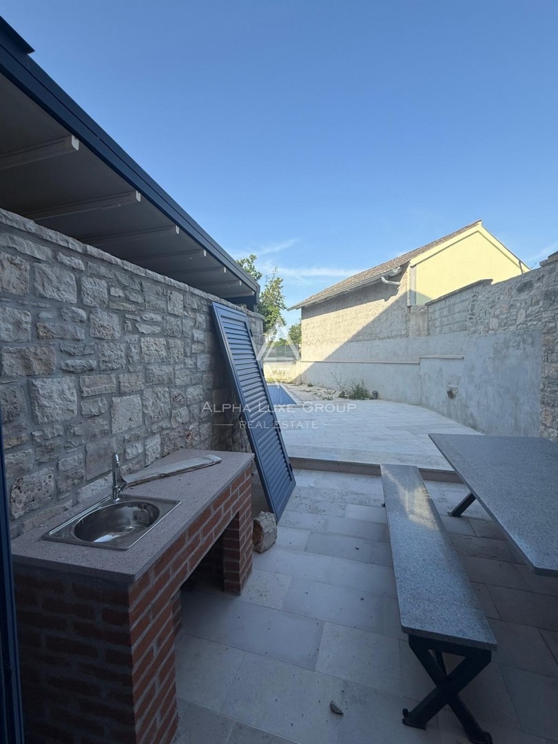 Poseben aneks v velikosti 20 m² je zasnovan kot samostojno stanovanje z dnevno-spalnim prostorom in kopalnico – idealno za goste ali dodatni dohodek iz oddajanja. Prav tako je vključena očarljiva 10 m² velika konoba, ki se lahko uporabi kot vinska klet, letna kuhinja ali prostor za sprostitev.