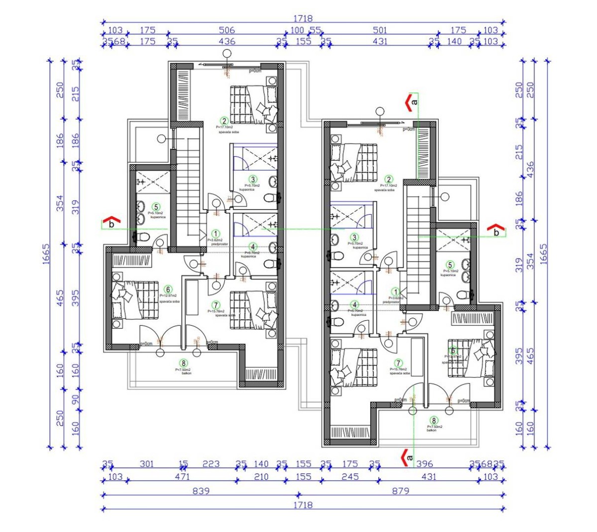 Izdano je pravnomočno gradbeno dovoljenje za izgradnjo dveh sodobnih hiš z bazeni, vsaka neto površine 150 m2 – idealno za investicijo, turistični najem ali zasebno rabo.
