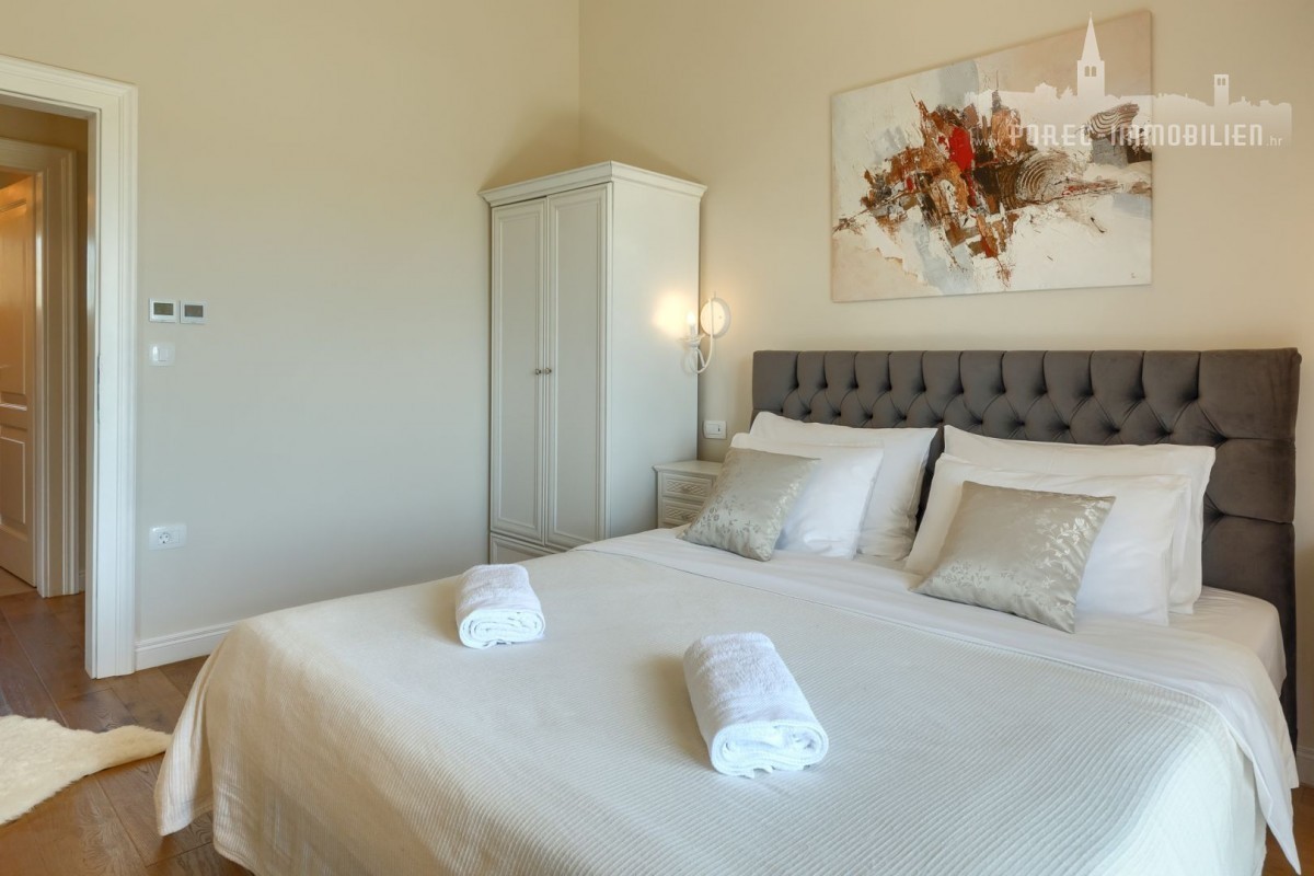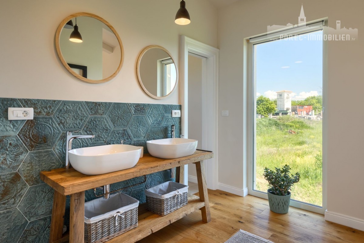 V bližini očarljivega mesteca Višnjan je na voljo impresivna kamnita vila. impresivna kamnita vila je na voljo za prodajo. Ta luksuzna dvonadstropna rezidenca se razprostira na površini 170 m² in odlično združuje eleganco in mir. Vila ima štiri spalnice, od katerih ima vsaka kopalnico, ki predstavljajo izjemen dizajn in visokokakovostno izdelavo.
