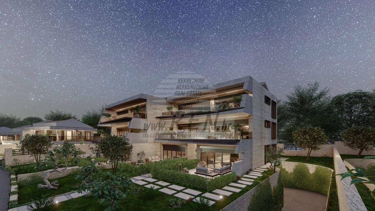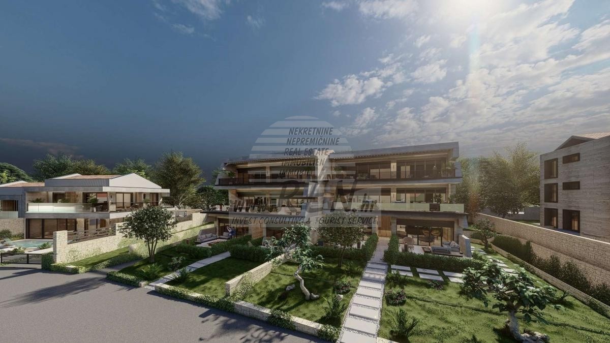 Stanovanje ima skupno 82,25 m2, terase dodatno ima 33,31 m2, oddaljeno je 5 min. (100m) od morja in od čudovite urejene naravne plaže, 10 min. (6000m) oddaljena od centra Umaga. Apartma se nahaja v drugom nadstropju. V gradnji. Skupaj je 2 spalnice, kuhinja, dnevna soba, 1 kopalnica, shramba. Stanovanje ima 2 lastna parkirišča, teraso, kamin, klimo, luksuzno opremljeno. V zasebnem naselju z recepcijo, možnostjo skupne uporabe telovadnice, wellnessa, otroškega igrišča, Wine bara, 24-urnim nadzorom, polnilno postajo za električne avtomobile, na voljo paketi vzdrževanja objekta.