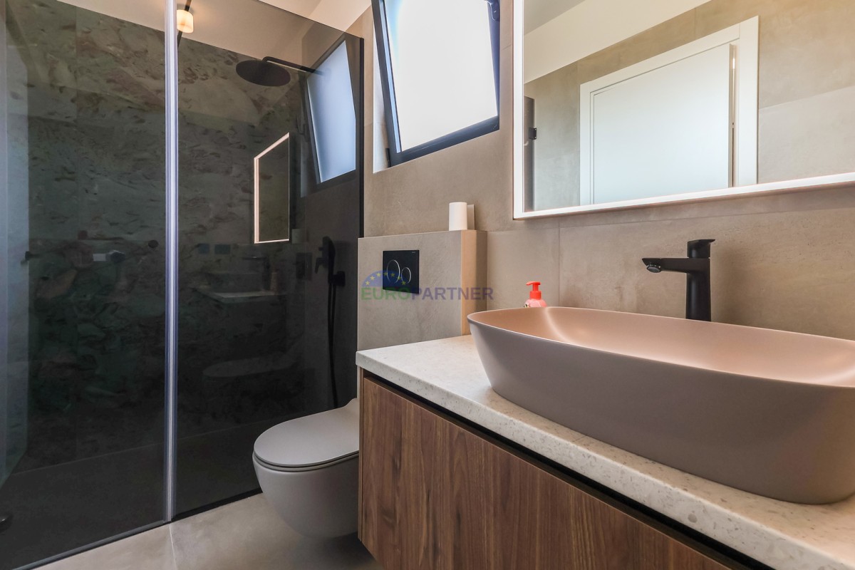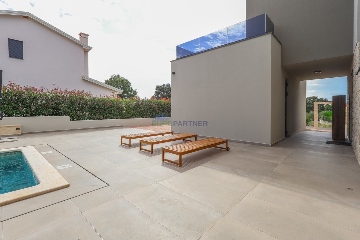 Prodamo čudovito moderno vilo, 7 km od centra Poreča. Vila se nahaja v zelo mirnem naselju, v neposredni bližini pa se nahajajo moderne vile, oljčni nasadi, vinogradi in čudoviti istrski griči. Vila ima 249m2 bivalne površine in se nahaja na zemljišču velikosti 800m2.