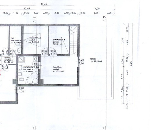 Stanovanje v prvem nadstropju stavbe, dve spalnici, kopalnica, dnevna soba s kuhinjo in terasa, parkirno mesto