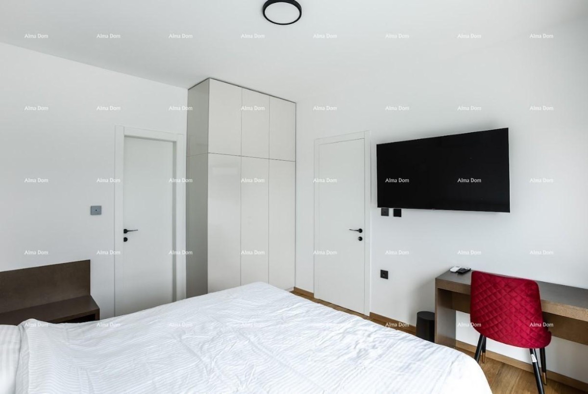 V pritličju se nahajajo tehnična soba, kopalnica, prostorna dnevna soba s jedilnico in kuhinjo. Velike prostorne stene nudijo pogled na zunanjo teraso in bazen.