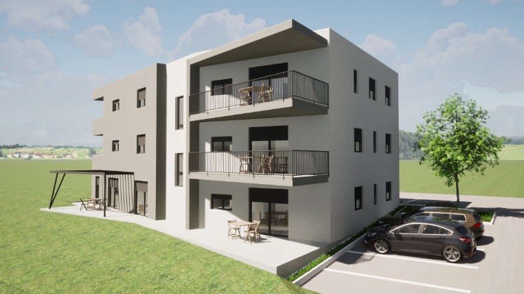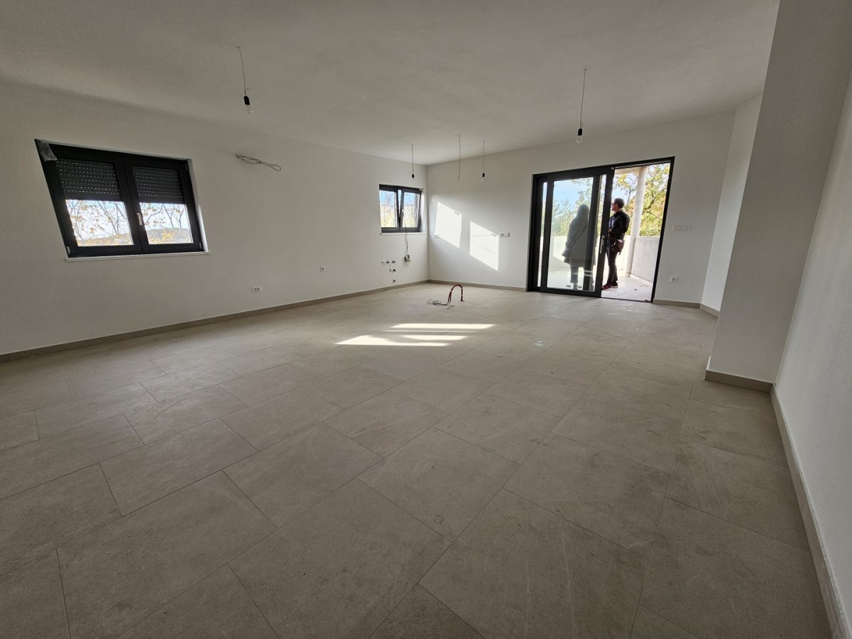 Poreč - Penthouse v 2. nadstropju novogradnje. Stanovanje ima skupno površino 148 m2 in je sestavljeno iz hodnika, stranišča, štirih spalnic, dveh kopalnic, shrambe, kuhinje, jedilnice z dnevno sobo z izhodom na prostoren balkon.
