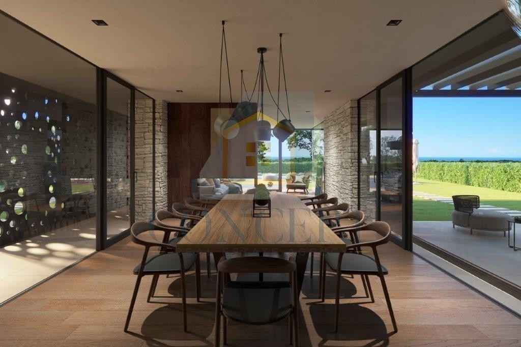 Na prodajo je moderna vila z odprtim pogledom na morje, vinograde in oljčne nasade, v okolici Poreča, oddaljena 10 km od morja in 2 km od centra kraja, kjer se nahajajo trgovina, pošta in šola.